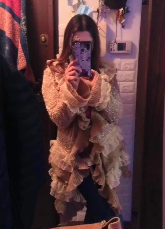 Poncho Manga mariposa puntada abierta totalmente Lisa cuello redondo algodón No y el otoño invierno nueva 2022 Lotus Shirt Mujer