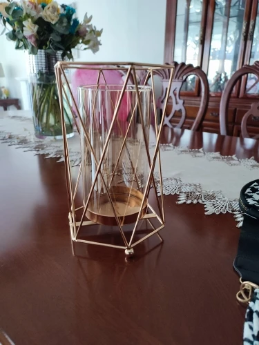 Portavelas de Metal de cristal para decoración del hogar, accesorios modernos, florero transparente, florero decorativo, decoración de boda