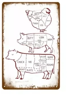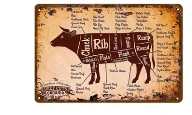 Póster de la guía del carnicero, carteles de Metal Vintage, gráficos cortados de carne, cuadro de Arte de cocina, imagen de restaurante, decoración de pared YL006