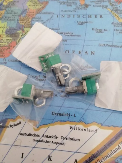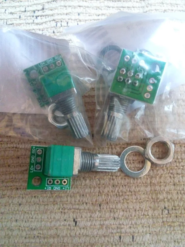 Producto fiel a la descripción. Llegó a España en tres semanas, bien etiquetado y empaquetado en sobre acolchado. Este lote está formado por tres potenciómetros de 50kohm y están soldados a una placa que facilita la conexión "RGL in" y "RGL out". Puedes utilizar un conector ph2.54 o soldar los cables directamente. Su uso está dedicado para poder regular el audio a la entrada de un amplificador o funciones parecidas. Sus dimensiones son de 15x15x13mm y el eje del potenciómetro es de 7mm. Se incluye tuerca y arandela de montaje pero no el tapón giratorio. Buena relación calidad/precio, menos de 1$/PCS. Recomiendo producto y vendedor.