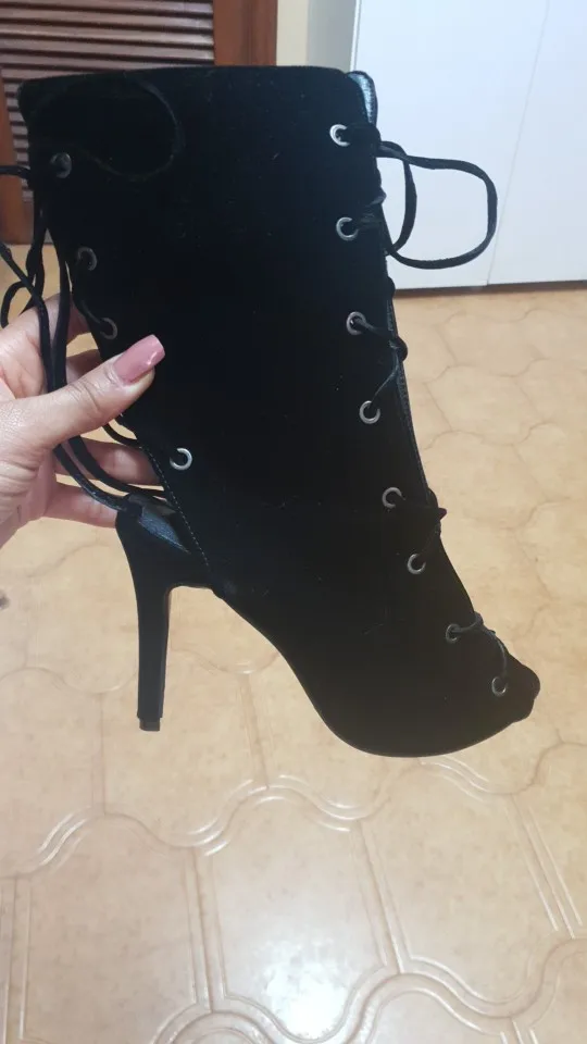 Precio barato gladiador Sandalias de tacón para mujer botas Peep Toe Spiked tacones altos Suede cuero Slingback Lace-up mujer Botines 46