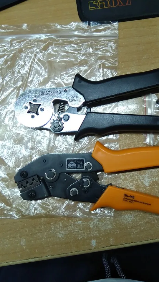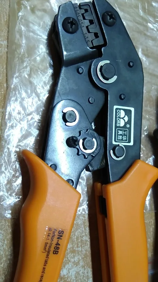 Los alicates funcionan , pero el trinquete que tiene no me acaba de convencer , parece que a veces si atasque por como este diseñado , la palanca que tienen es muy corta y queda a ras de plástico cosa que hace difícil destrabar y volver a posición de reposo. Las matrices SN48 y SN 28 a simple vista parecen iguales. Tuve que ajustar la tensión del muelle porque sino era incapaz de abrirlas. Mirar fotos que adjunto. Adjunto foto de otros alicates para ver trinquete y comentar que estos alicates naranjas parecen una imitación de los otros originales de Colors, las pegatinas delatan el acabado. Los otros que tengo tienen la marca serigrafiada con laser , estas solo 2 pegatinas.