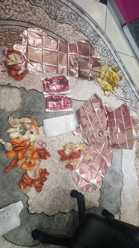No lleva ningún palo/pajita para soplar el número y la corona y tampoco incluye cinta para pegar globos como en otros sitios. Casi no me llega para la fecha. La fecha de a final de enero. llegó casi una semana después