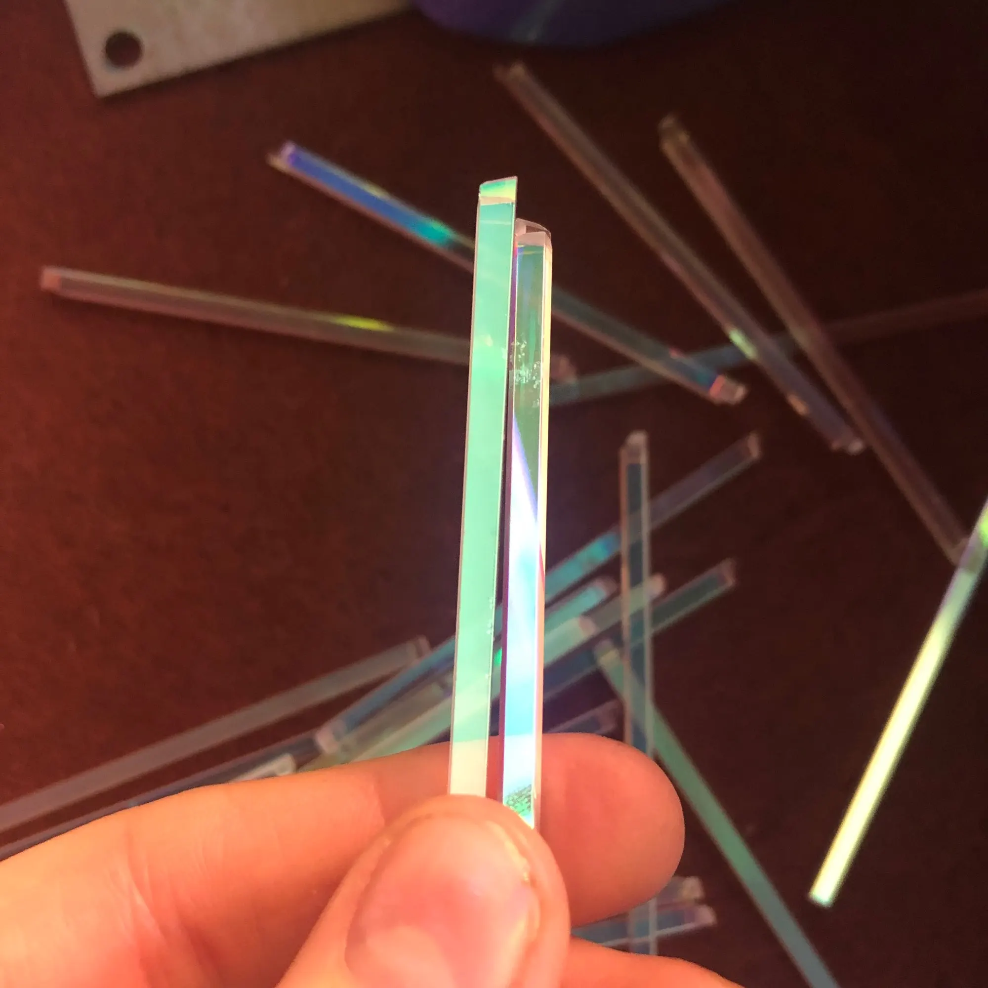 Prisma de cristal óptico de prisma largo, colorido y defectuoso, Prisma de cristal de reflexión del arco iris, RGB, tira combinadora, Prisma artesanal decorativo, 20 Uds.