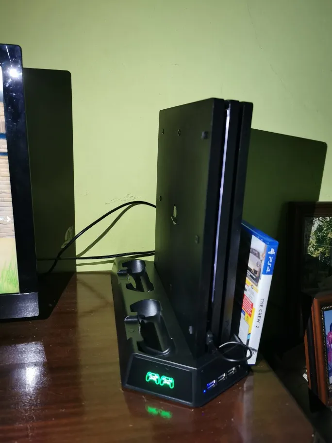 PS4 Pro Slim soporte Vertical de ventilador de refrigeración refrigerador con controlador doble estación de carga y 3 Extra HUB puerto para Playstation 4 PS4