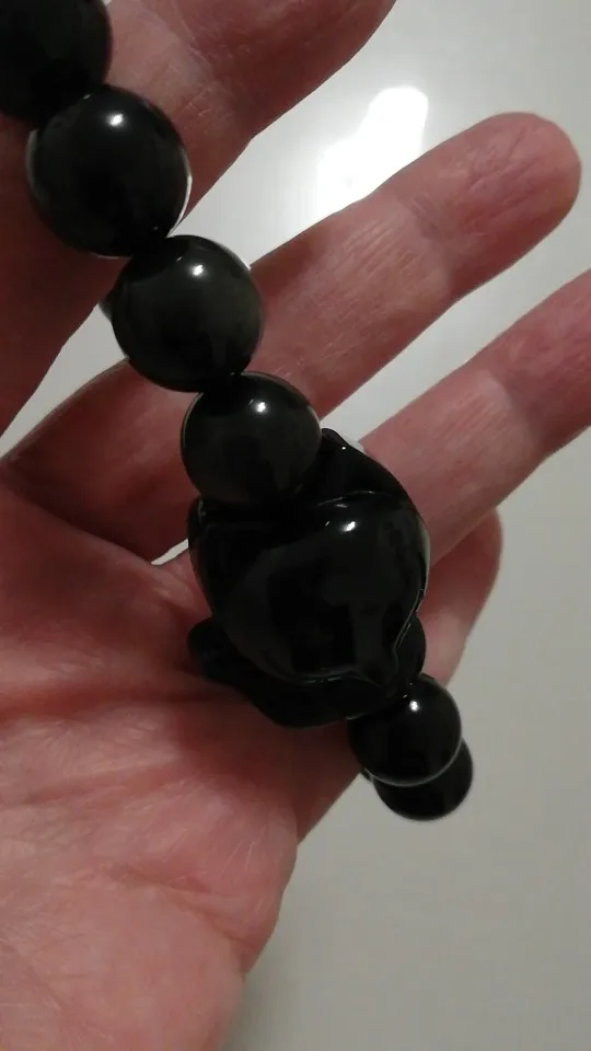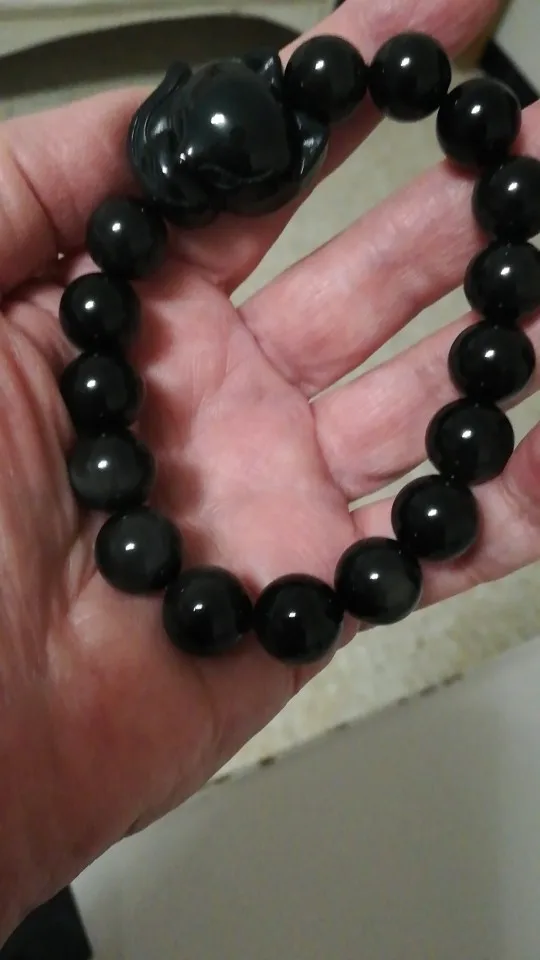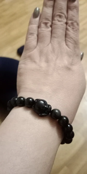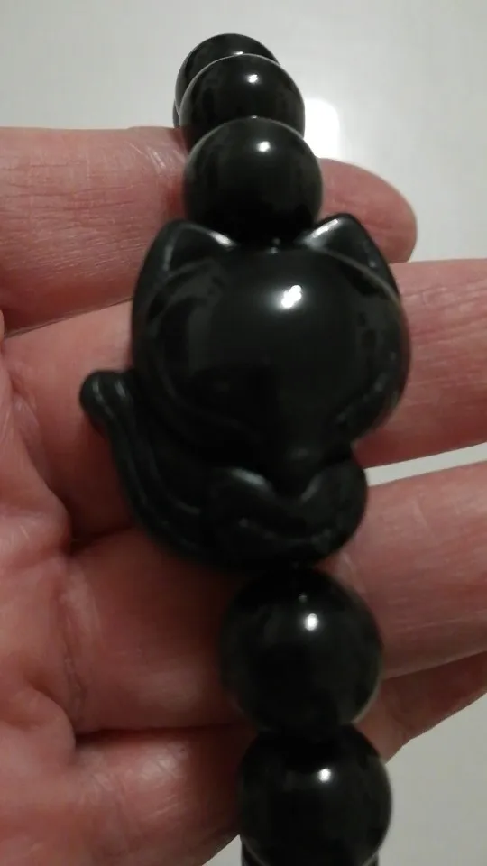 Natural Stone Obsidian Fox Round Beaded Bracelet
