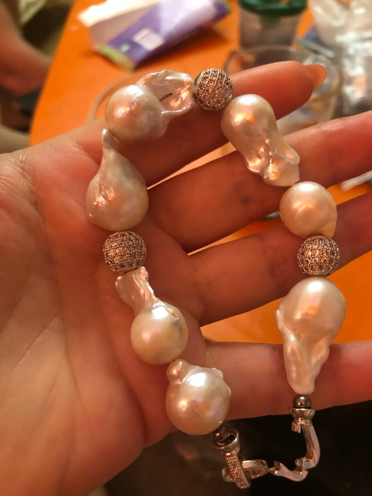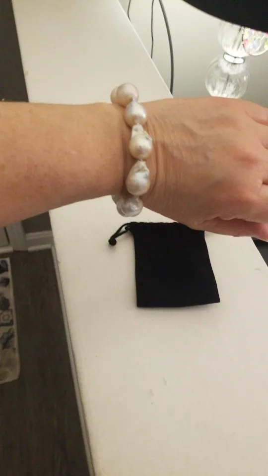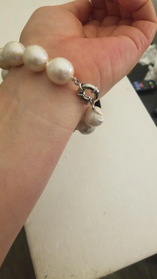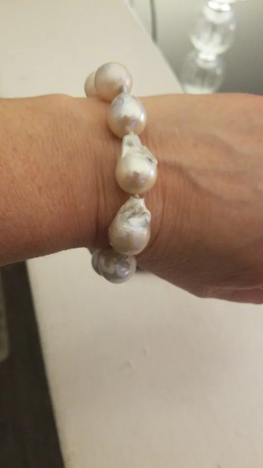 Pulsera barroca o keshi de perlas naturales, de gran tamaño, color blanco, 100% agua dulce