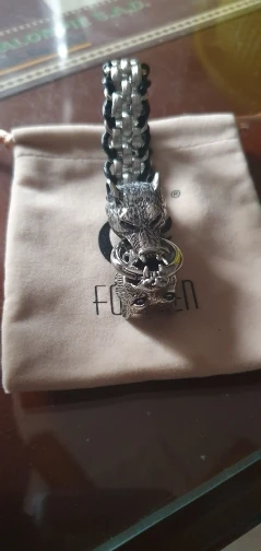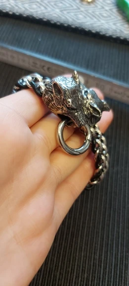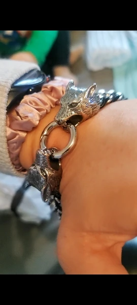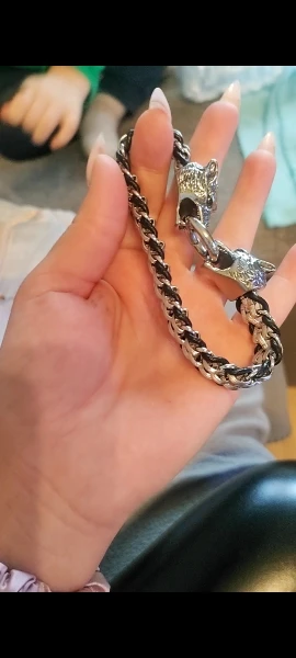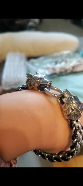 Pulsera clásica de lobo de acero inoxidable de Fongten, pulsera de cuero de vaca para hombre, brazalete de moda, brazalete para hombre, accesorios para hombre, joyería
