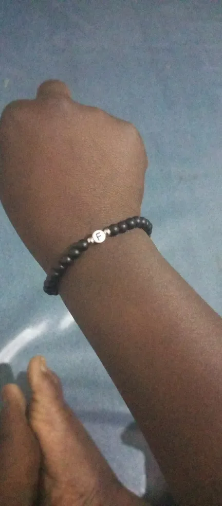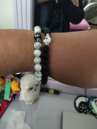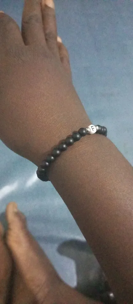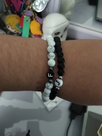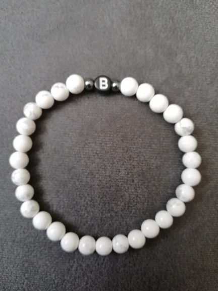 Pulsera con 26 letras para hombre y mujer, brazalete con abalorio, color blanco y negro, piedra Natural Real, 2022