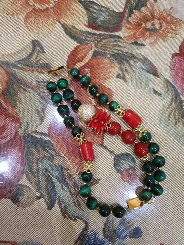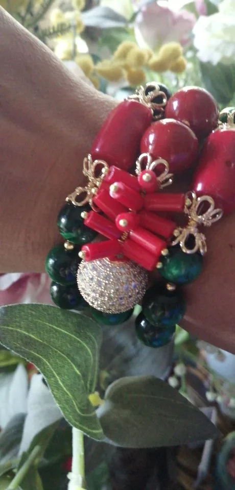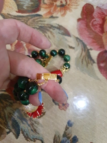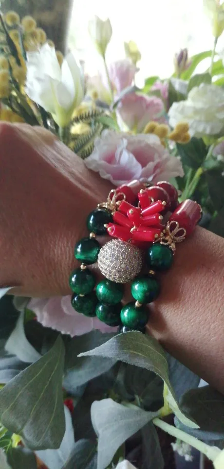 Pulsera de 3 hebras de circonia cúbica para mujer, brazalete con Micro cuentas pavé, colores rojo Coral, Ojo de Tigre verde, 8"