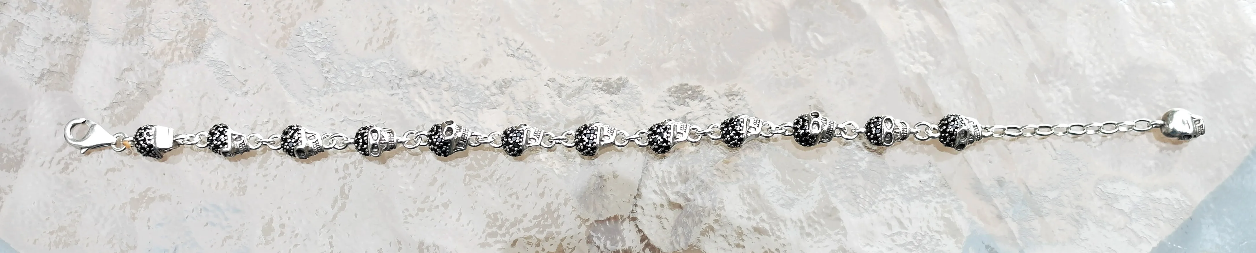 Pulsera de cadena de eslabones con forma de calavera para hombre y mujer, brazalete Punk de Plata de Ley 925, cuentas de ajuste Karma, joyería para el cuerpo, regalos de fiesta