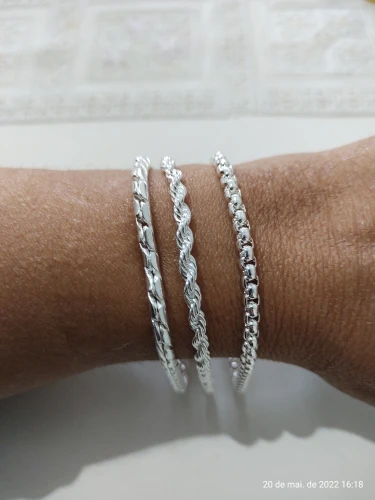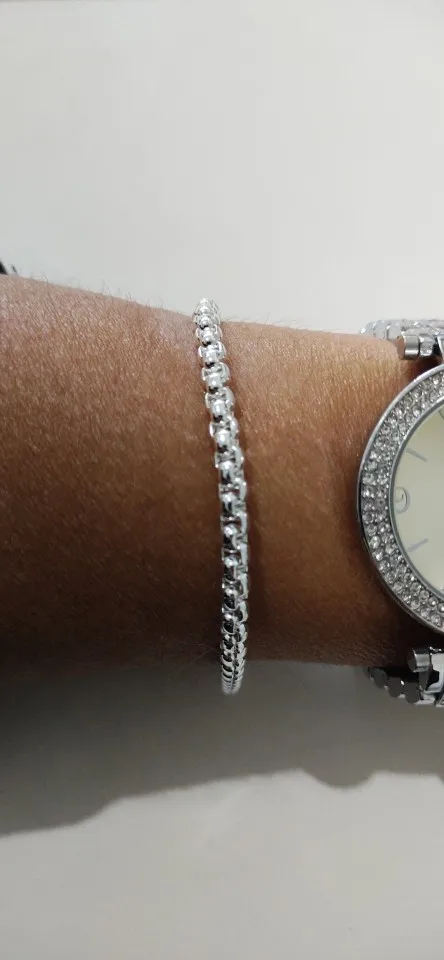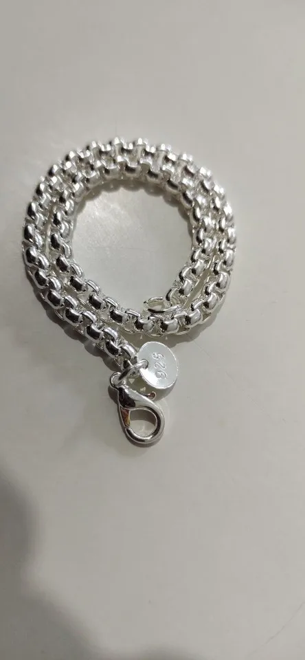 Pulsera de cadena de plata brillante, pulsera de cadena de cubo de cajas, letras talladas pulsera de plata chapada redonda pulsera de precio inferior