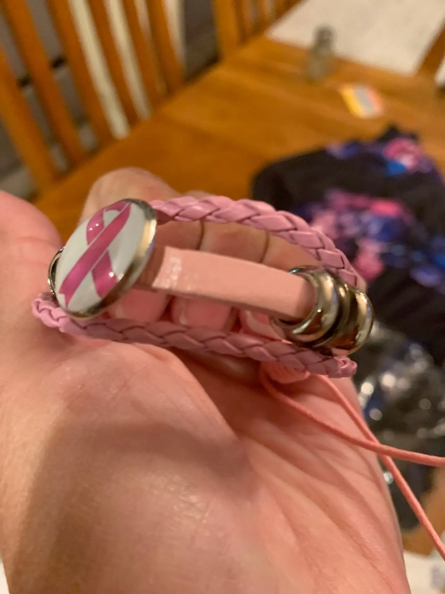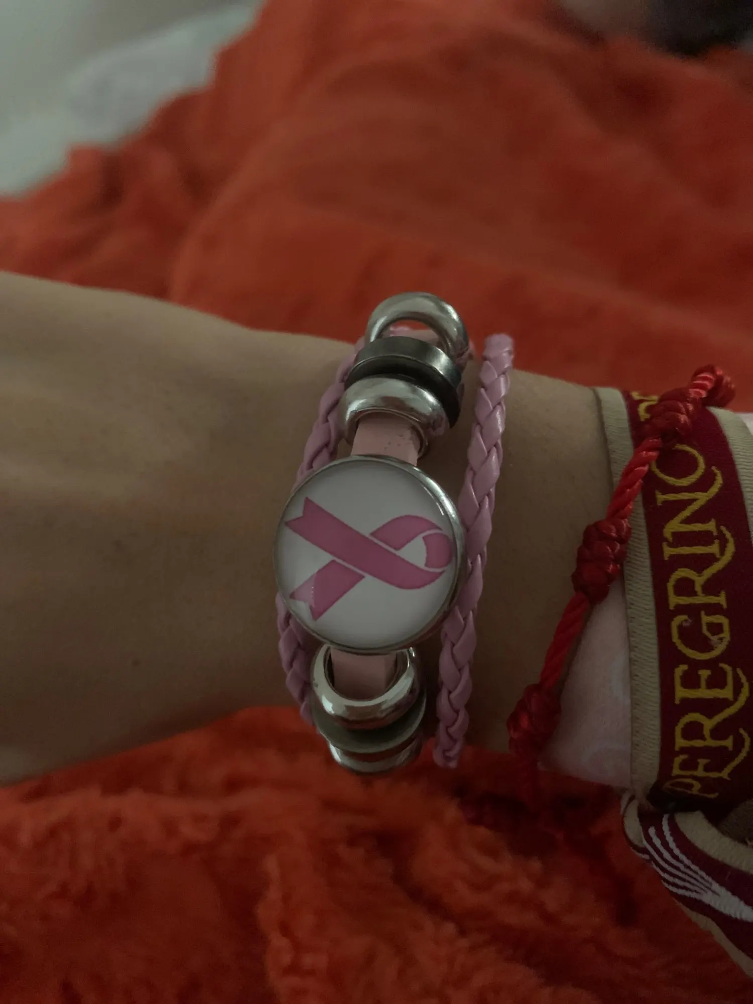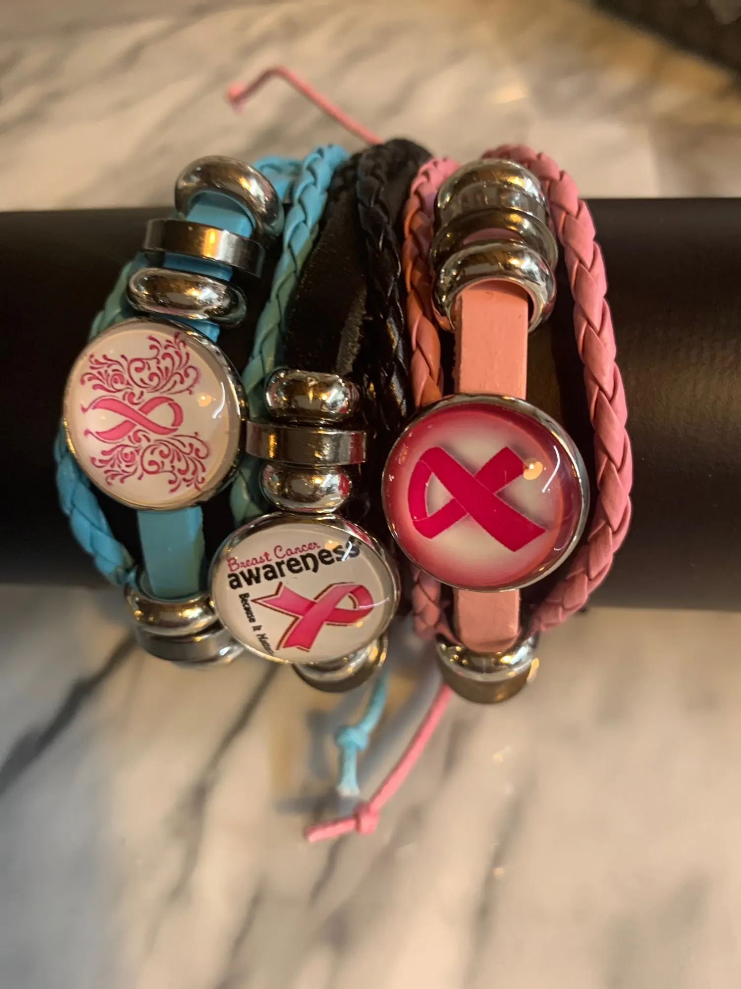 Pulsera de Concientización del cáncer de pecho para mujer, abalorio de cinta rosa, cuerda de cuero trenzado, brazalete, joyería hecha a mano