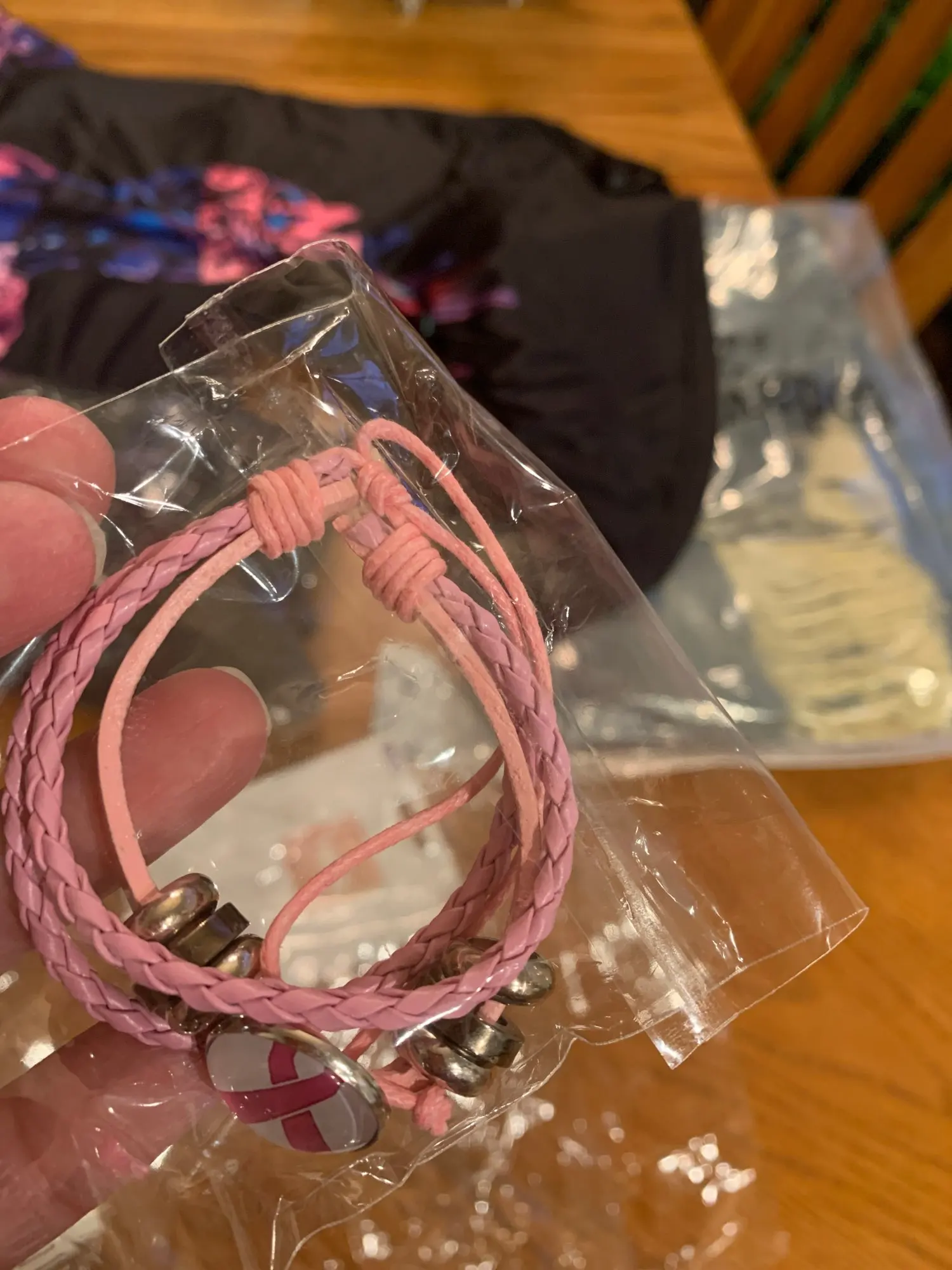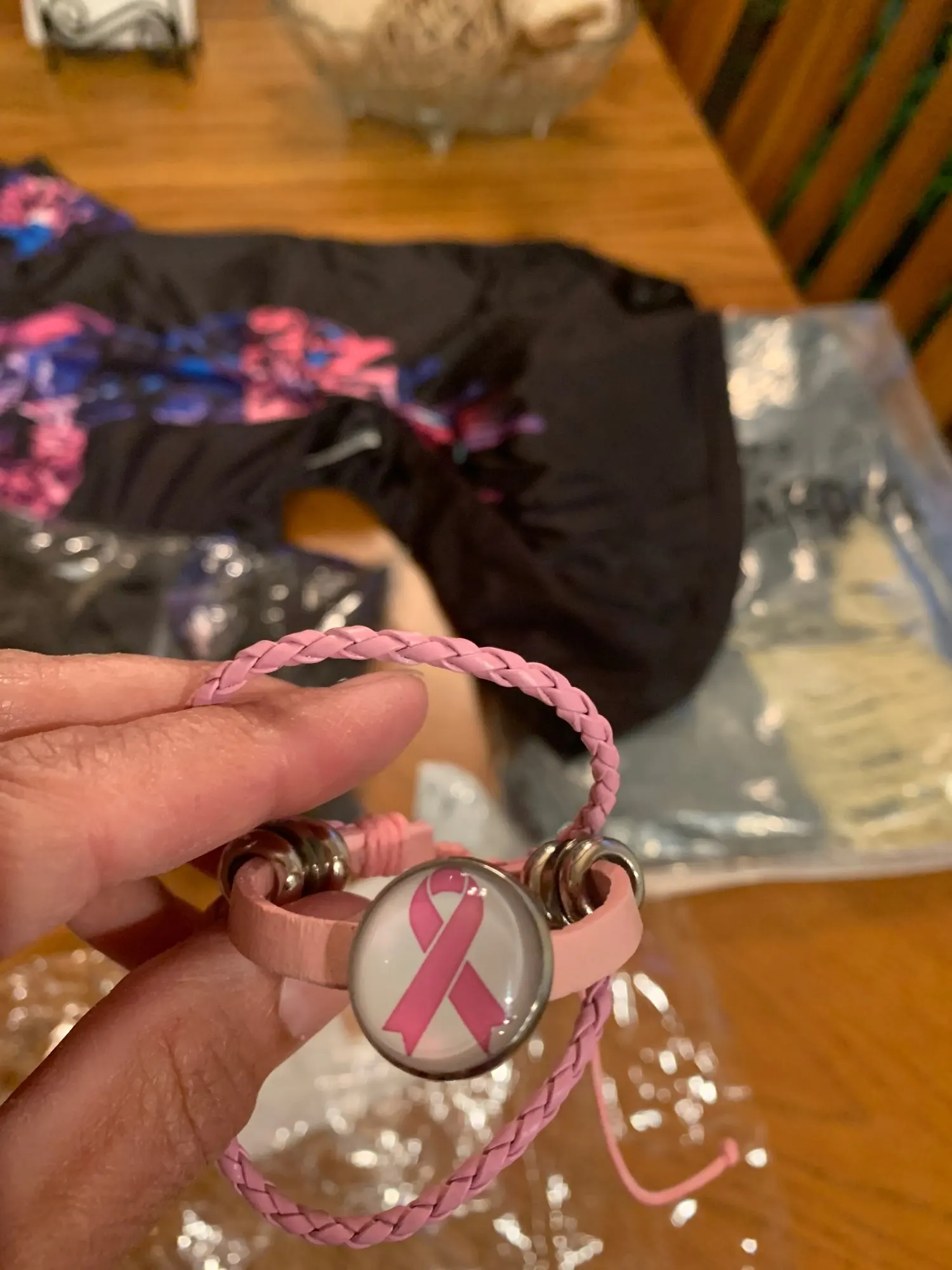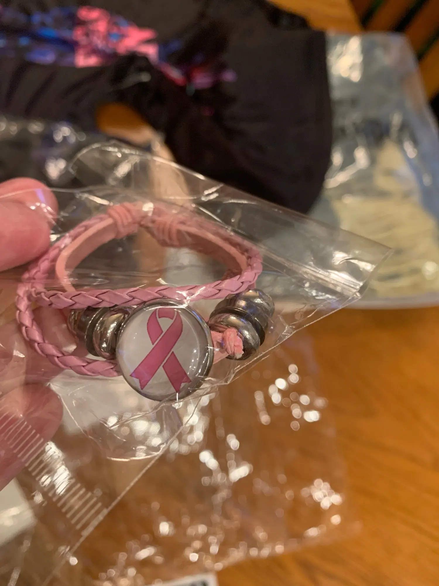 Pulsera de Concientización del cáncer de pecho para mujer, abalorio de cinta rosa, cuerda de cuero trenzado, brazalete, joyería hecha a mano