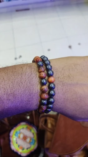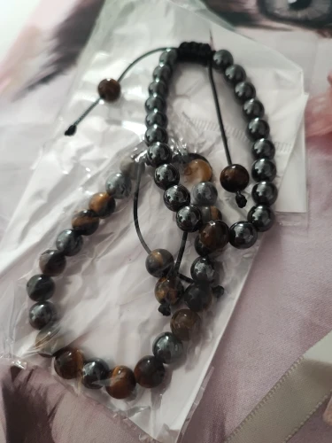 Pulsera de cuentas de hematita y ojo de tigre para hombre, brazalete ajustable hecho a mano, protección de la salud, piedras de energía, distancia de pareja, joyería, 2 uds.