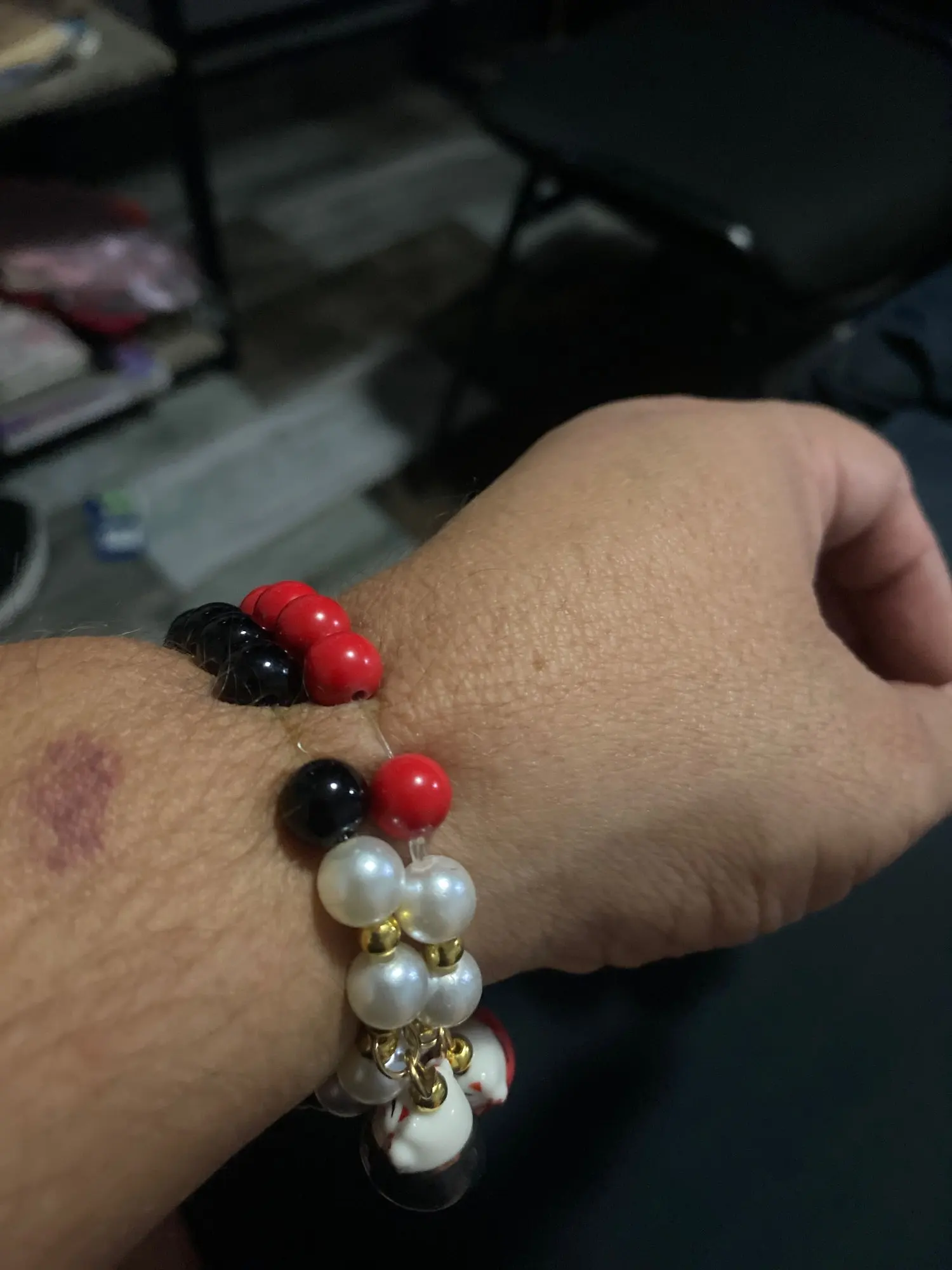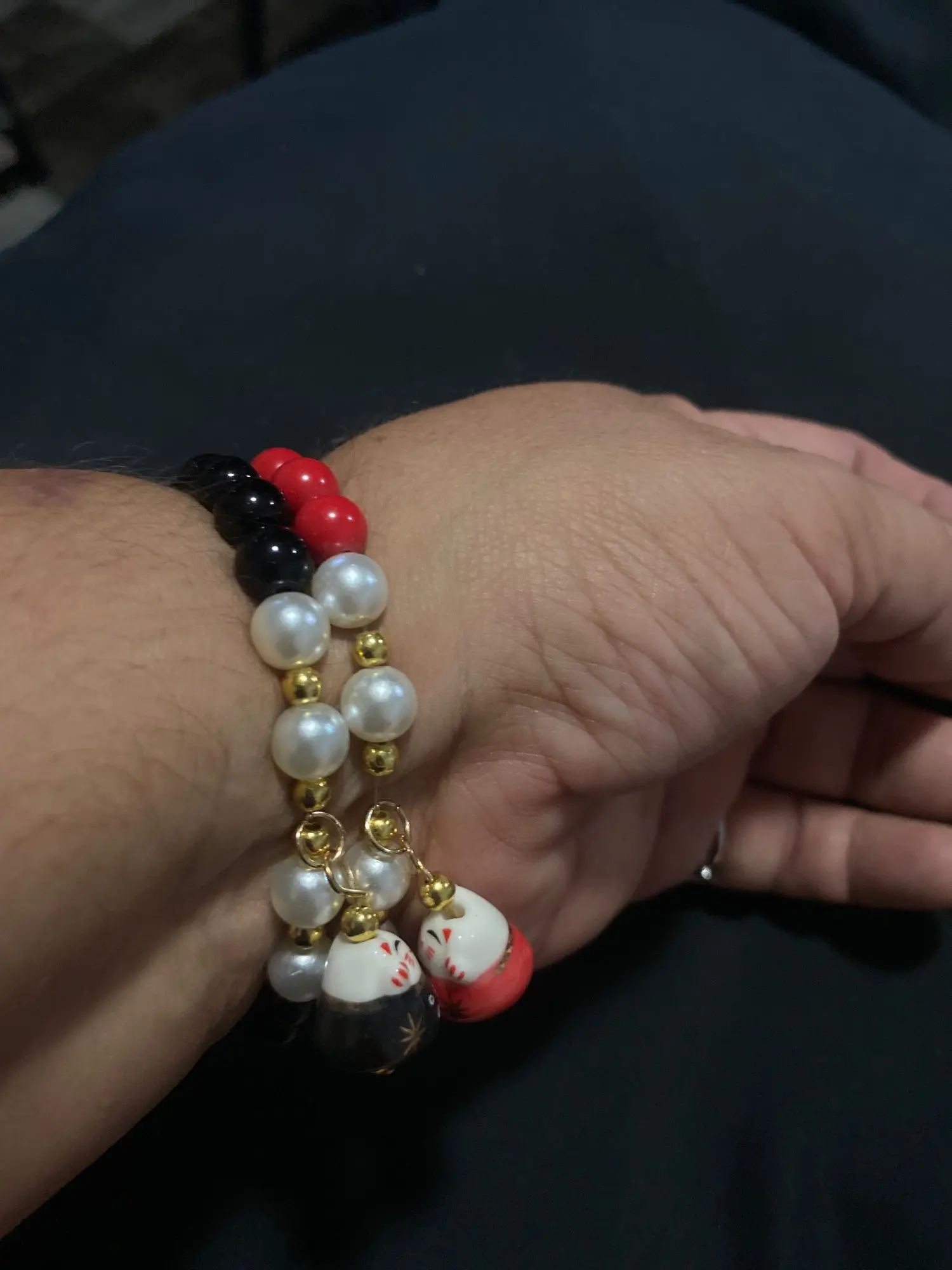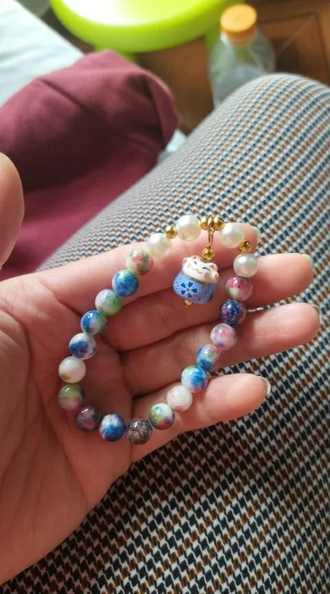 Pulsera de cuentas de piedra de gato de la suerte para mujer