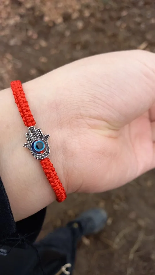 Pulsera de cuerda trenzada hecha a mano para mujer, cordel rojo de la suerte, ojo malvado, amuleto ajustable