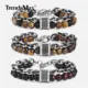 Pulsera de doble capa para hombre, piedra de ojo de tigre Natural con cuentas, pulsera de cuentas de cristal, cadena de Rolo de acero inoxidable OT hebilla DDBM51