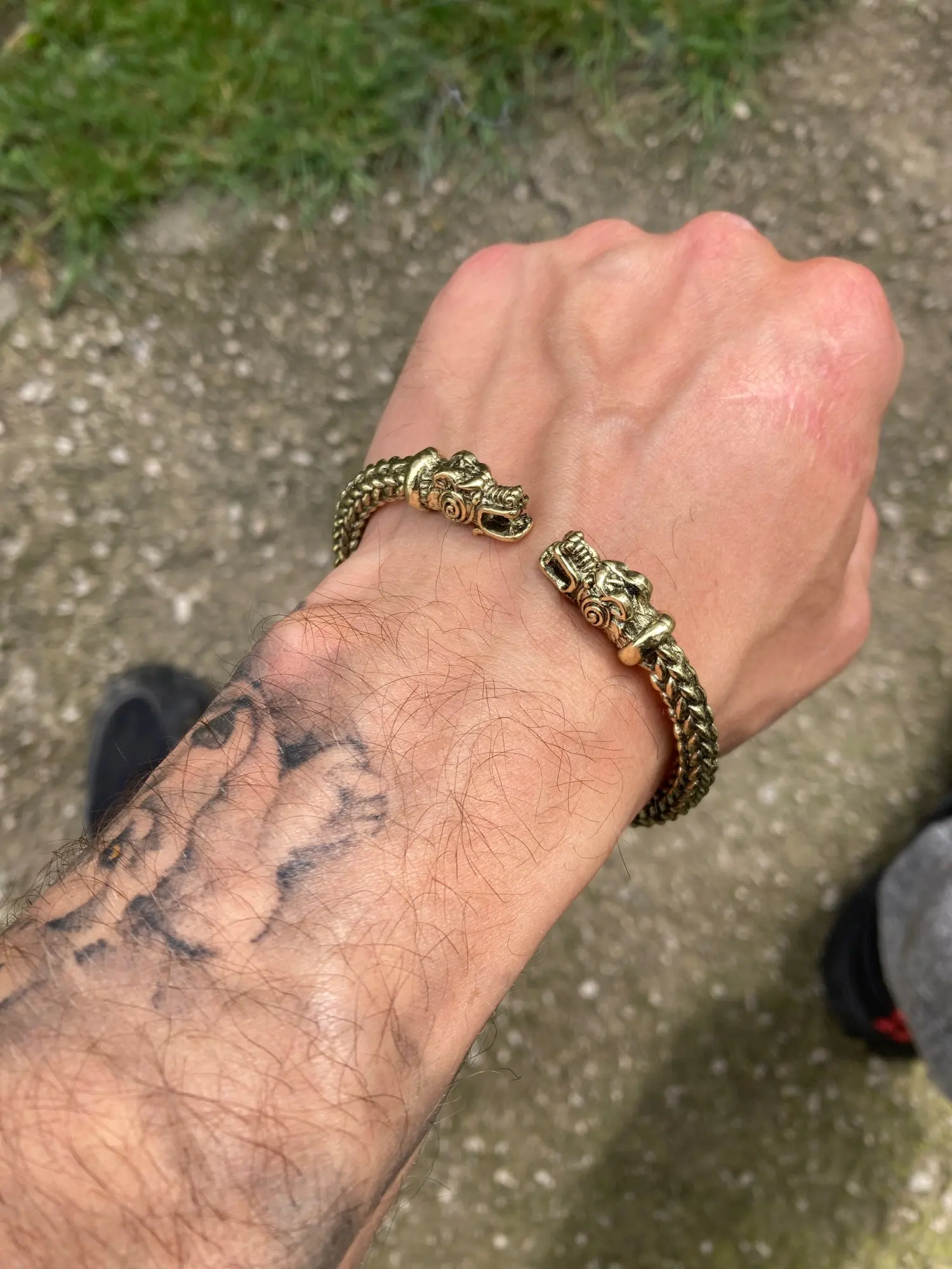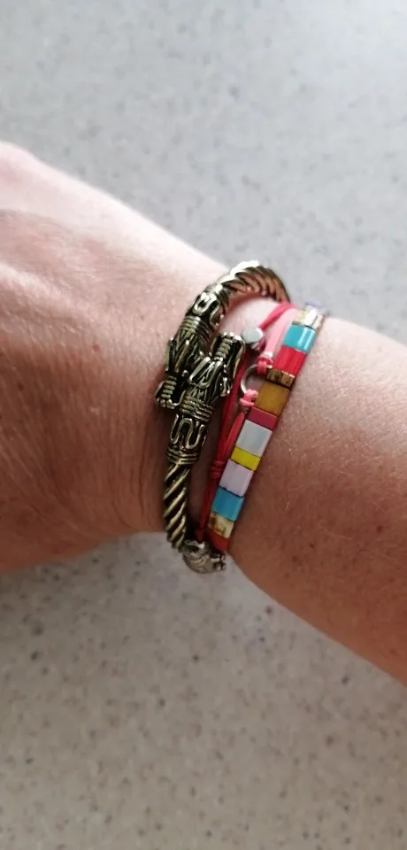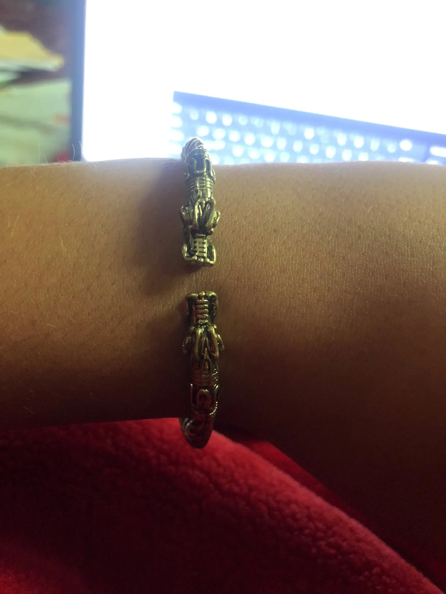 Pulsera de dragón QIMING, brazalete Vikingo, brazalete Fenrir, pulsera pagana para hombres, joyería de cabeza de Lobo eslavo, pulseras para mujeres, brazaletes de plata