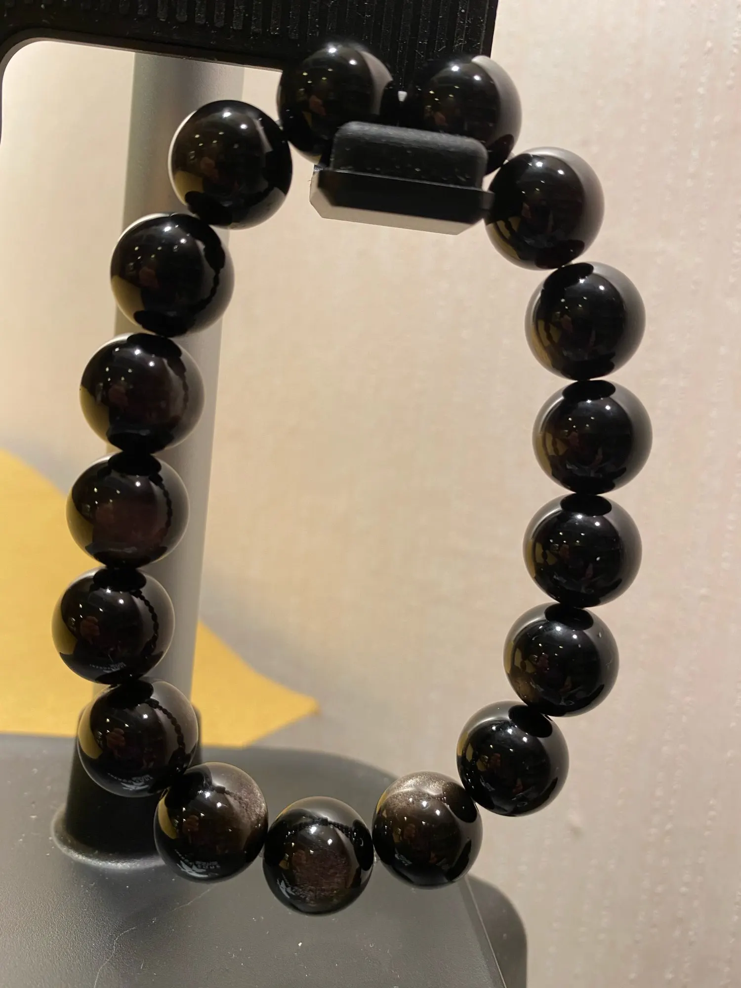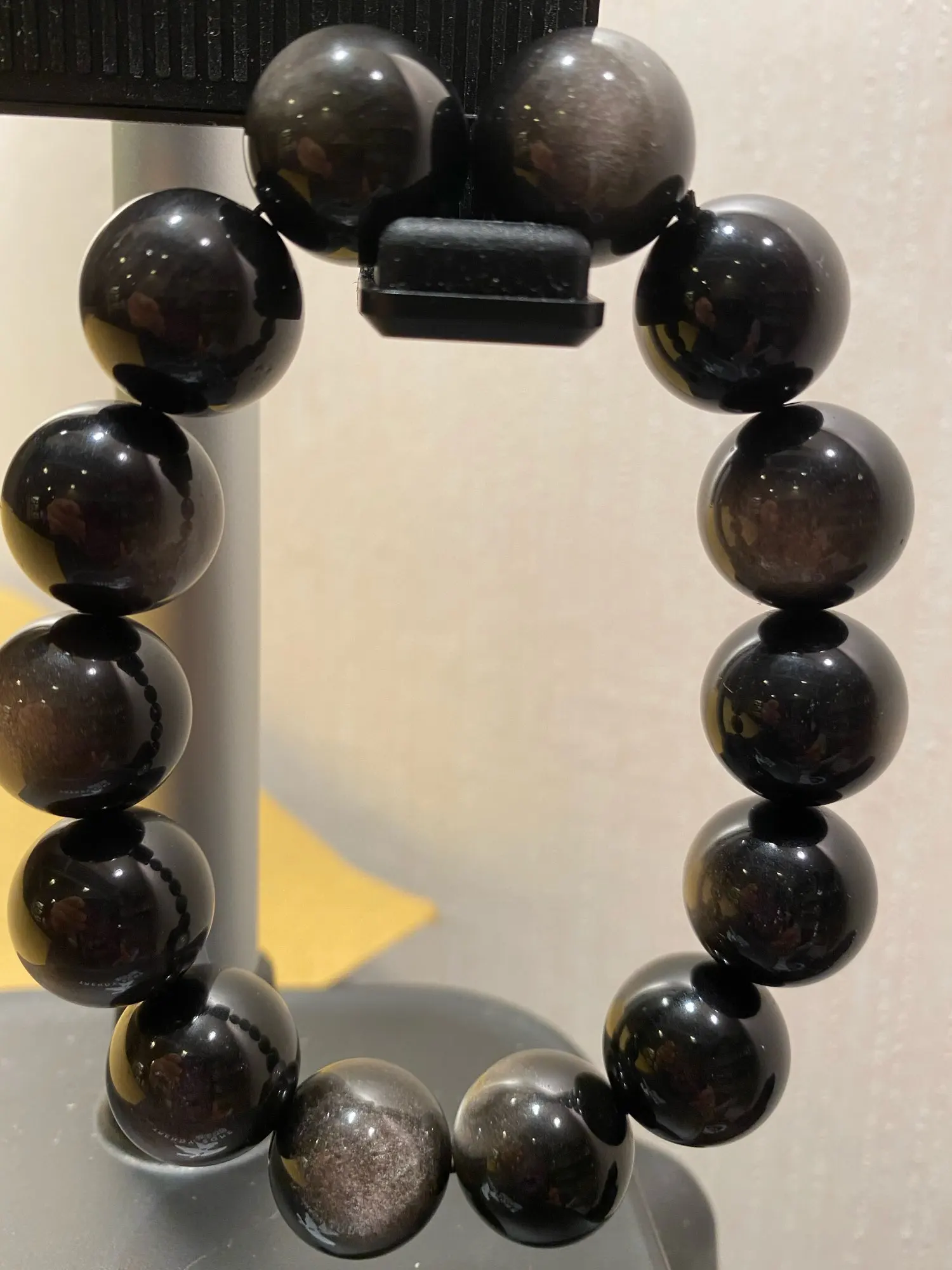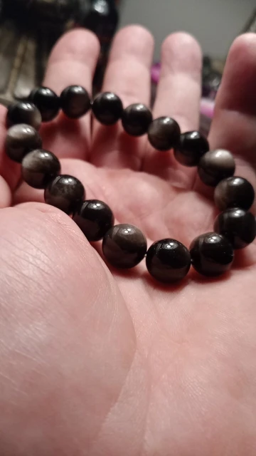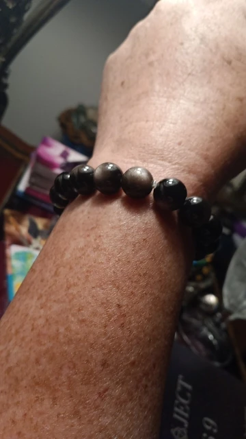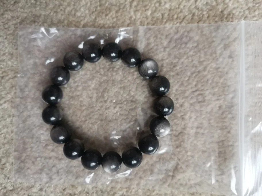 Pulsera de Flash de obsidiana plateada Natural auténtica para hombre y mujer, cuentas redondas elásticas de piedra, cristal de 10mm, 11mm, 12mm, 13mm, 14mm y 15mm, AAAAA