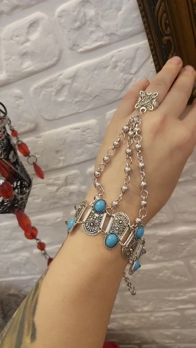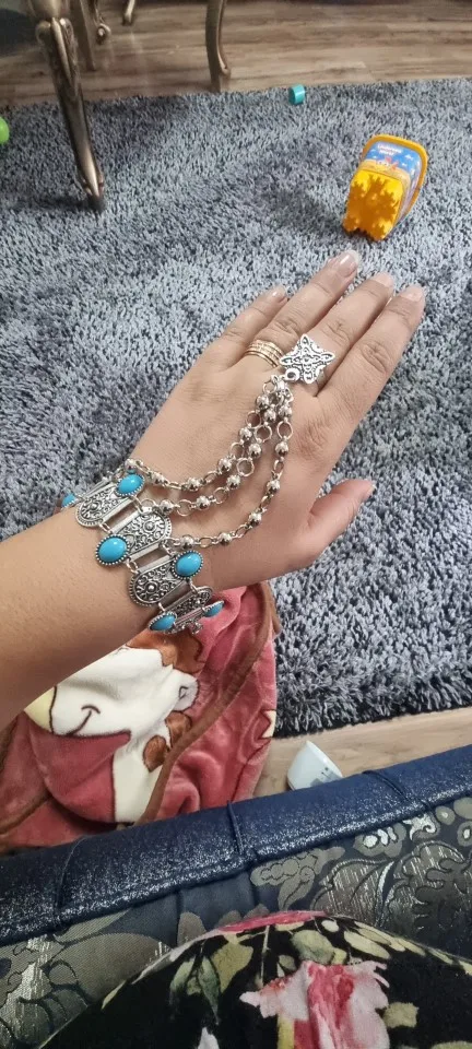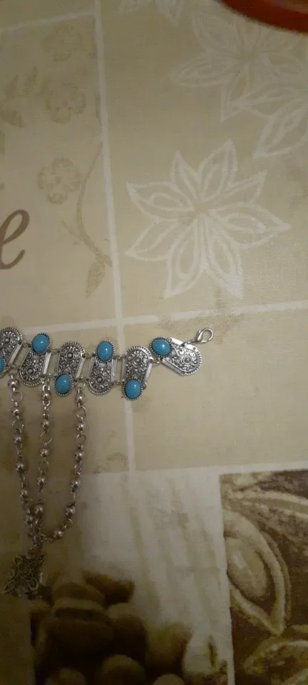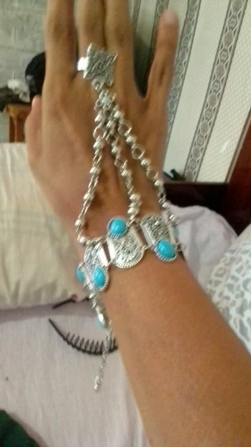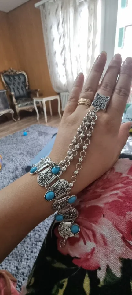 Pulsera de mano con colgante de moneda turca para mujer, brazalete de estilo Vintage, bohemio, gitano, playa, piedra azul, brazalete esclavo