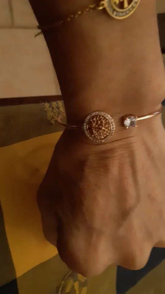 Pulsera de piedra blanca de circón para mujer, brazalete ajustable con diseño de árbol de la vida, de oro rosa, para boda