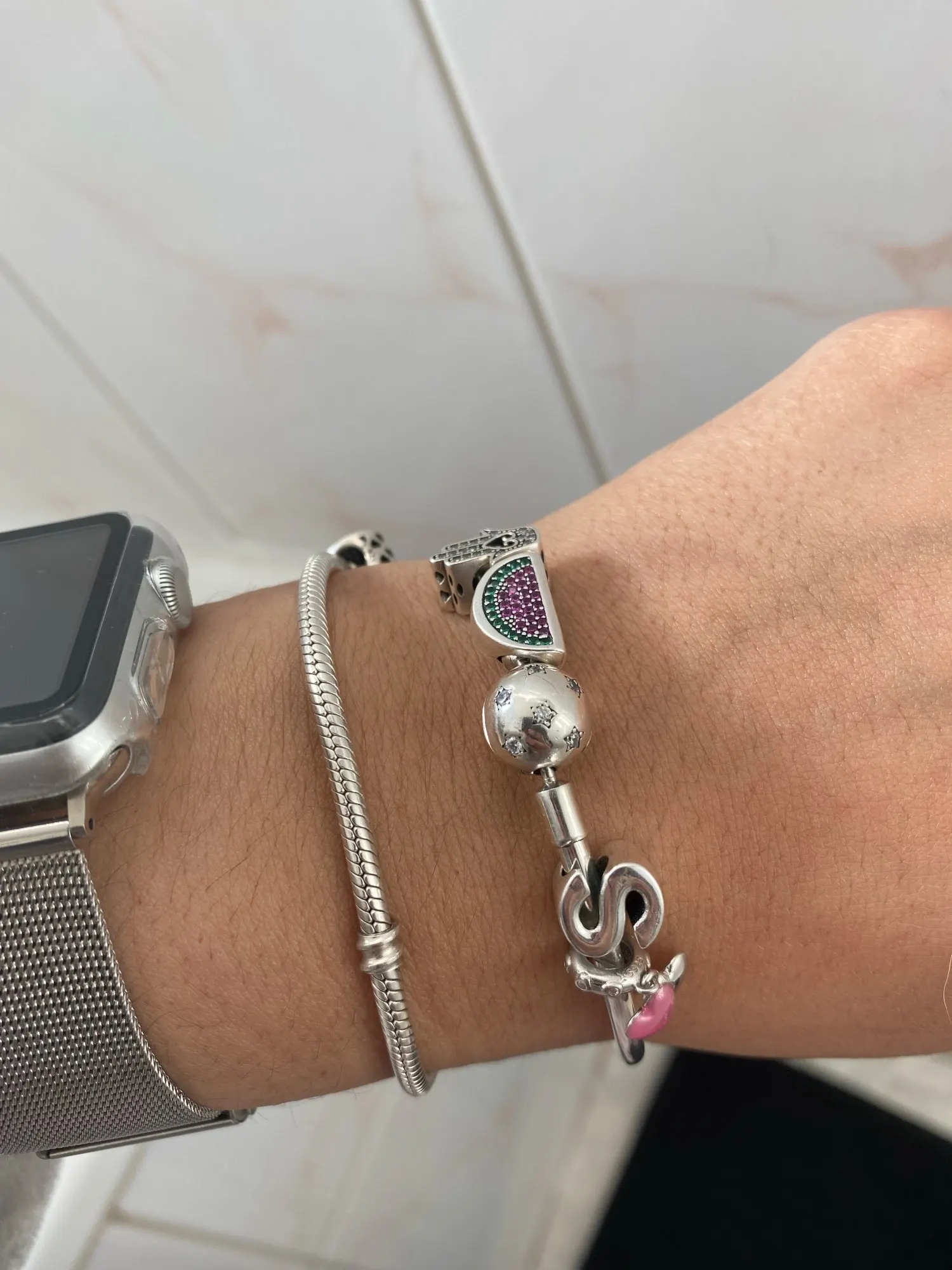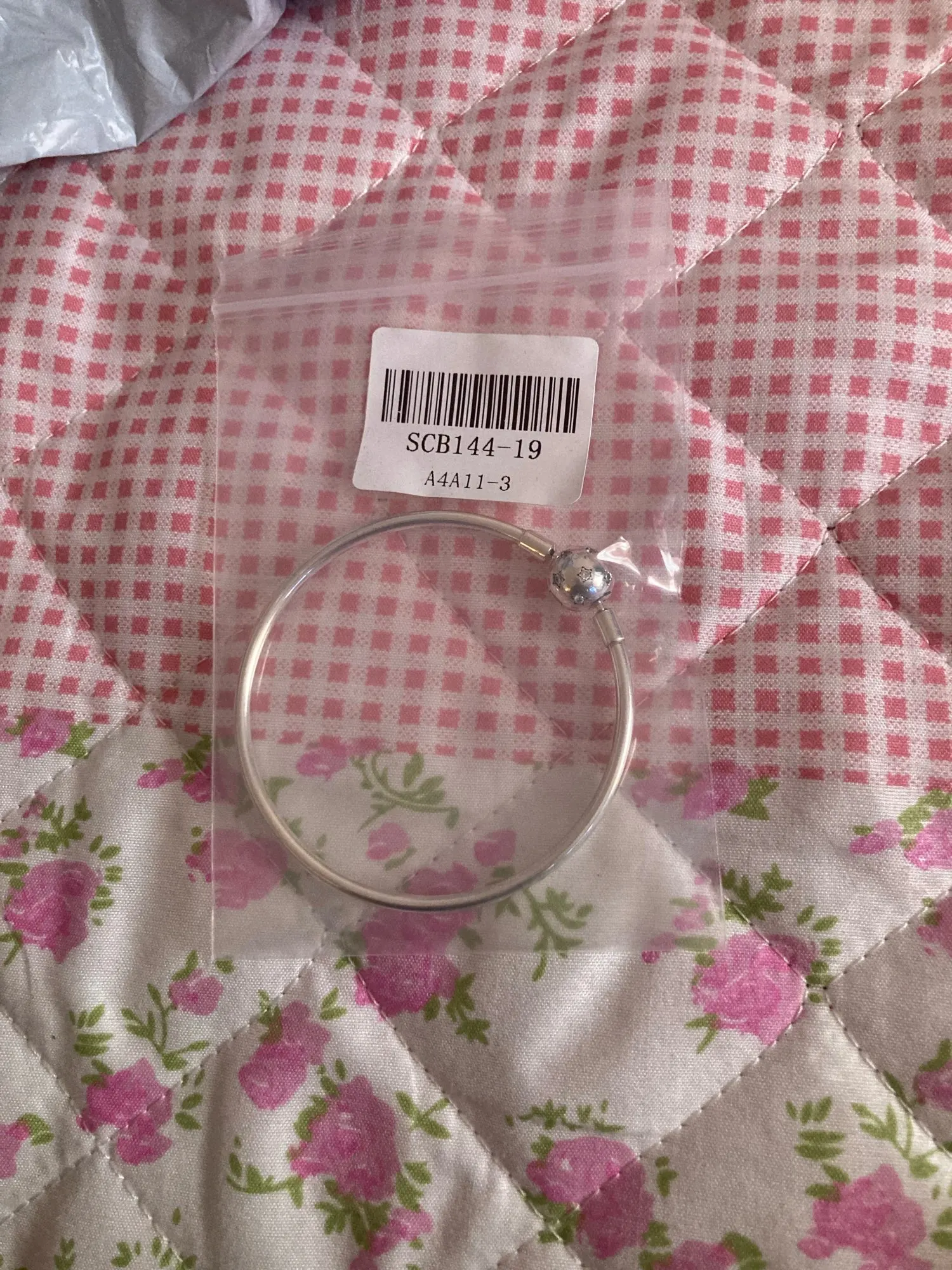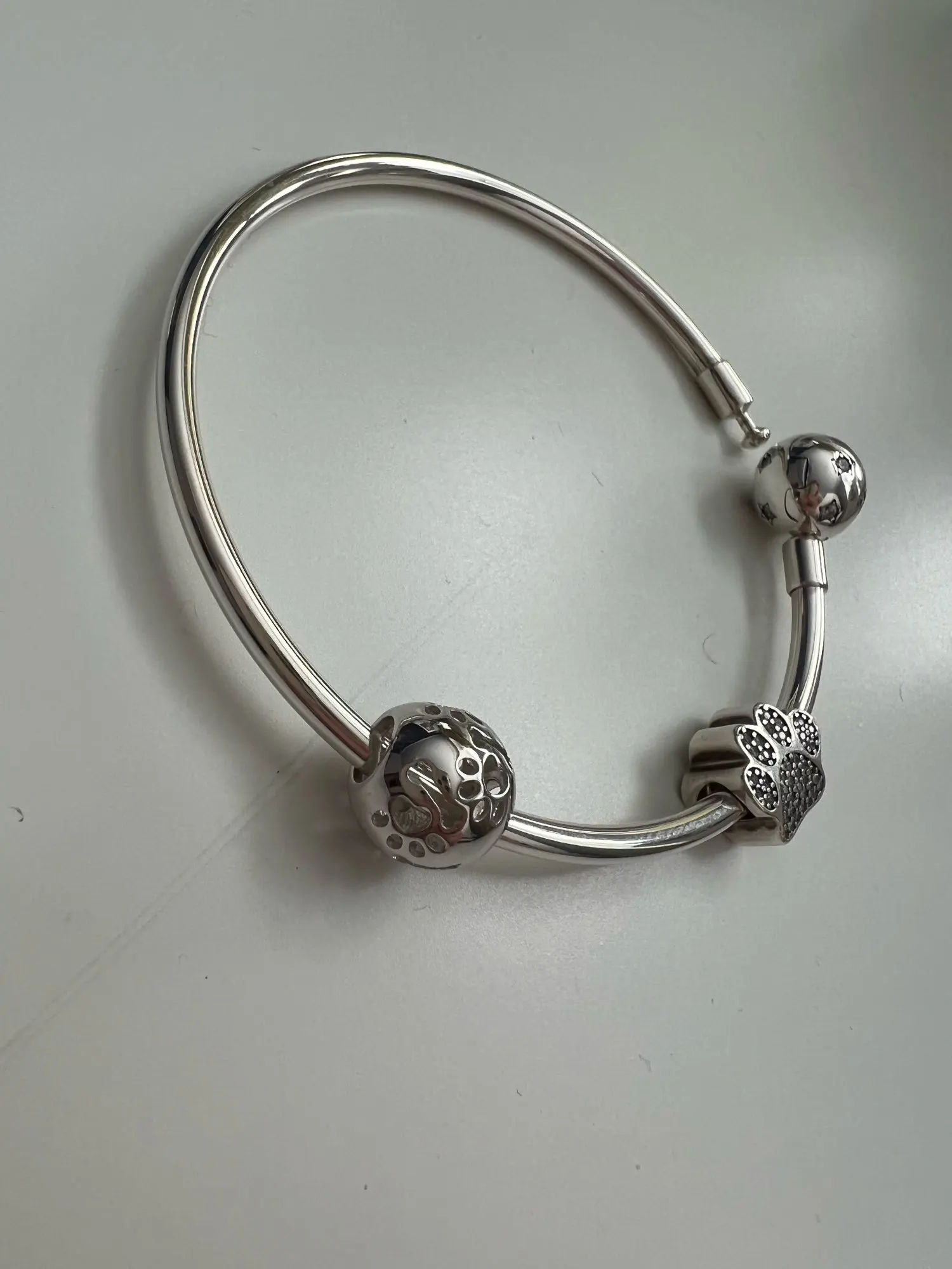 sello de plata , se dobla con mucha facilidad si la forzas (como yo al meter los charms) asi que hay que tratarla con cuidado