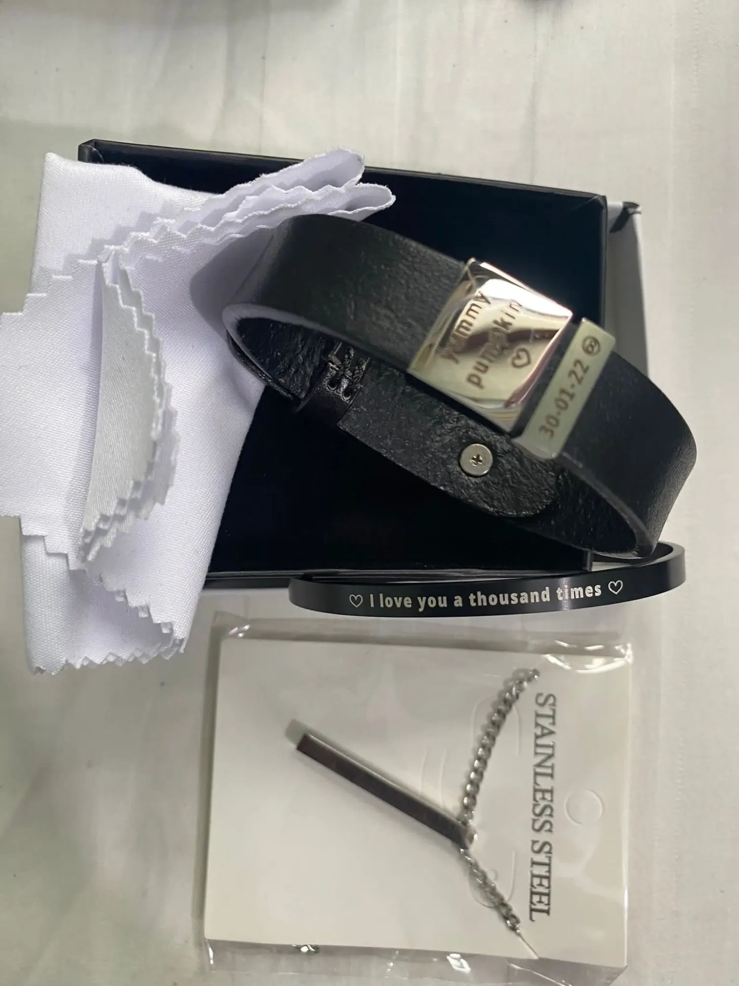 Leather,stainless steel beads