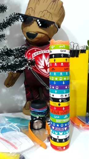 Pulseras de silicona con diseño de mariposa de la paz para hombre y mujer, brazalete Multicolor elástico con diseño de cruz de Jesús, Cráneo, Etc, paquete de 100 Uds.