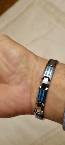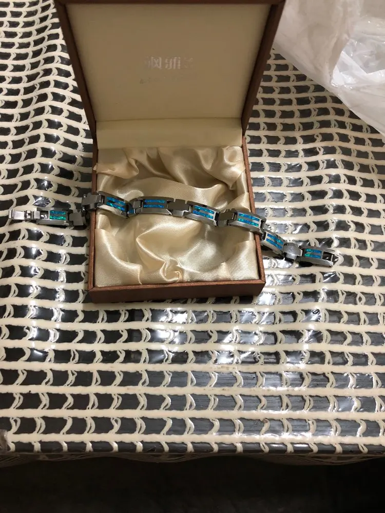 Pulseras de tungsteno Unisex de 10mm de ancho con piedras magnéticas incrustadas y Ópalo Azul y rojo de 18,5/20cm, envío gratis, personalizado