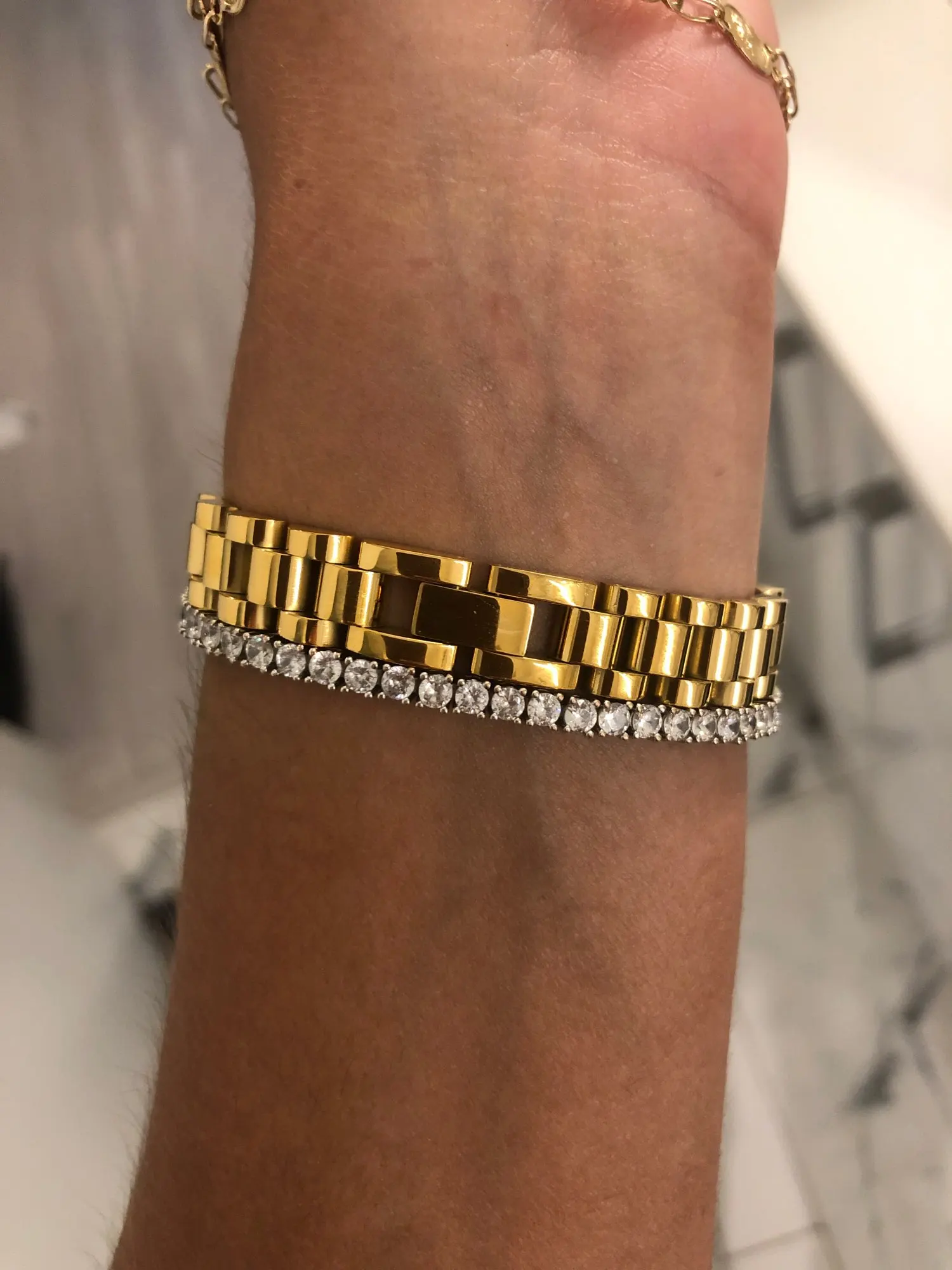 Pulseras desmontables chapadas en oro y acero inoxidable para mujer, brazaletes de Hiphop, envoltura de oro, 2022