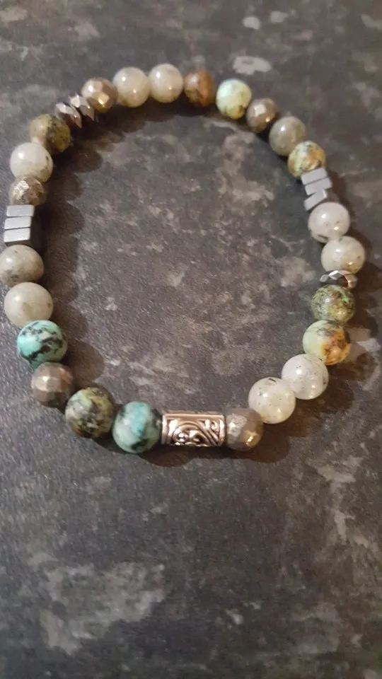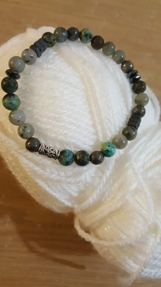 Pulseras elásticas de labradorita ligera para hombre y mujer, brazalete elástico de turquisa africana, cuentas para parejas, pulsera elástica de Hiphop para amantes