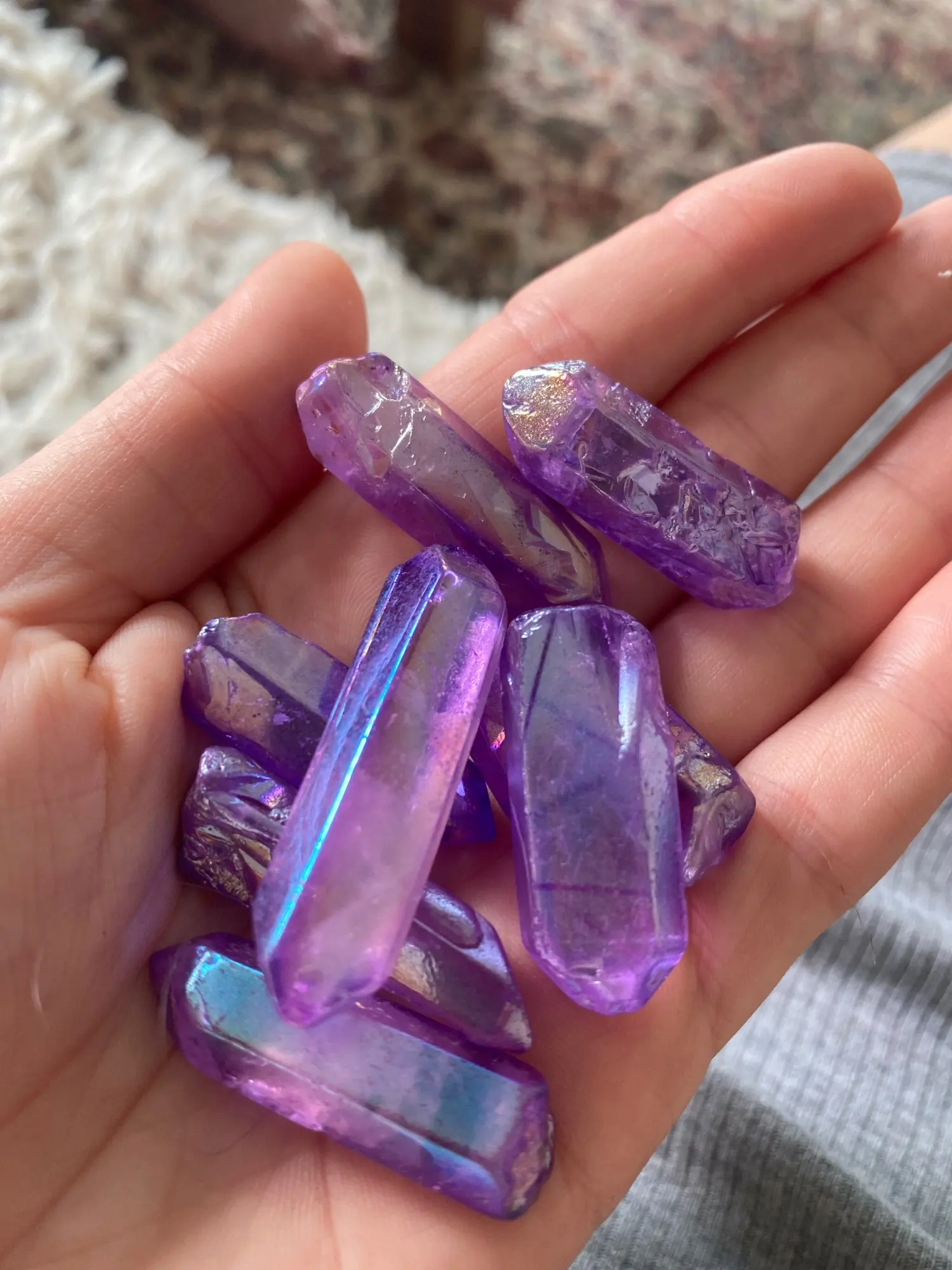Punta de cristal de cuarzo curativa Aura Lemurian, titanio rojo galvanizado, 50g, decoración de piedras naturales, cristales de cuarzo