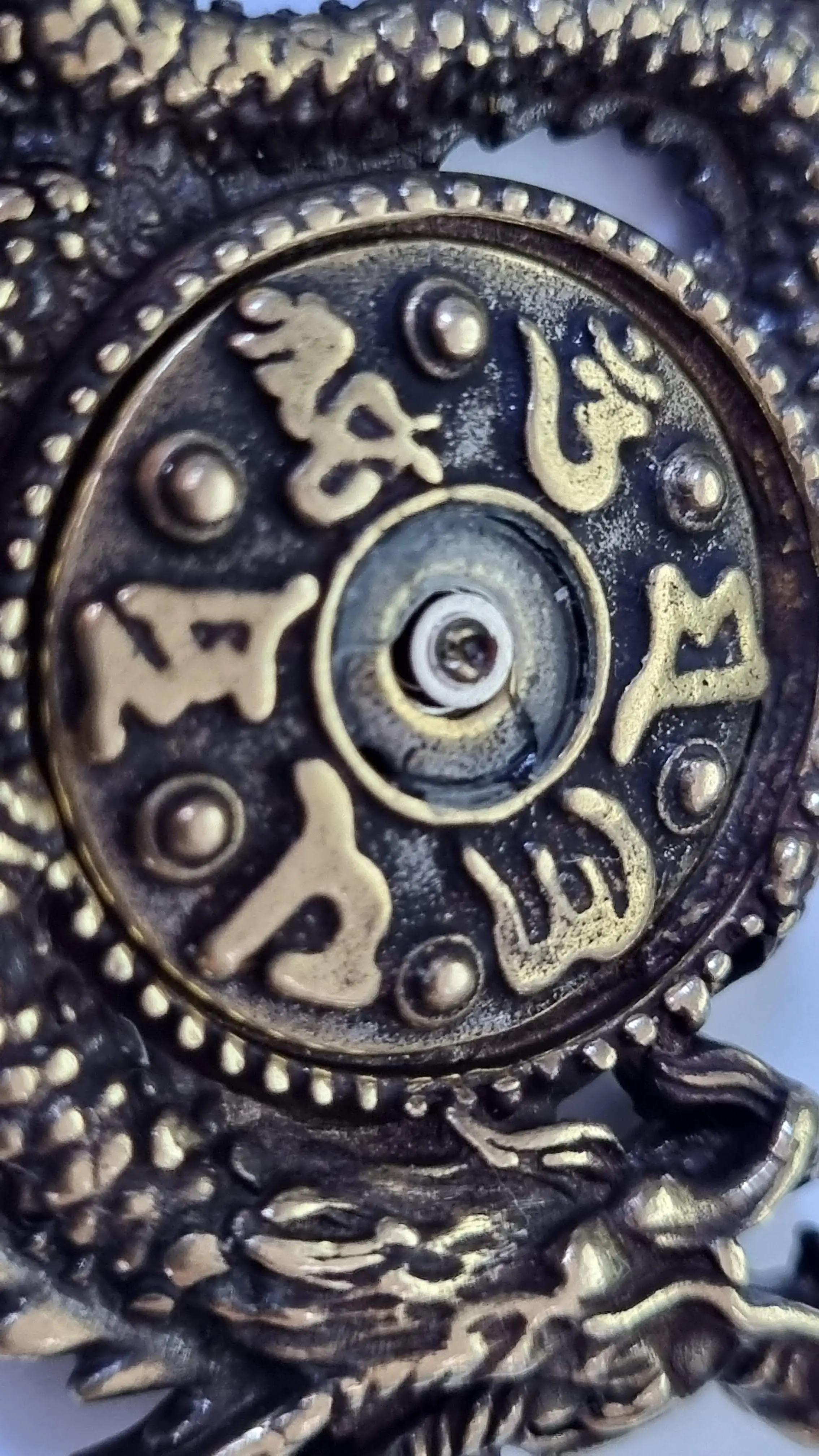 Puro latón Dragón Volador giratorio tibetano seis carácter Mantra llavero Retro colgante de cobre colgante de llavero de coche ornamento