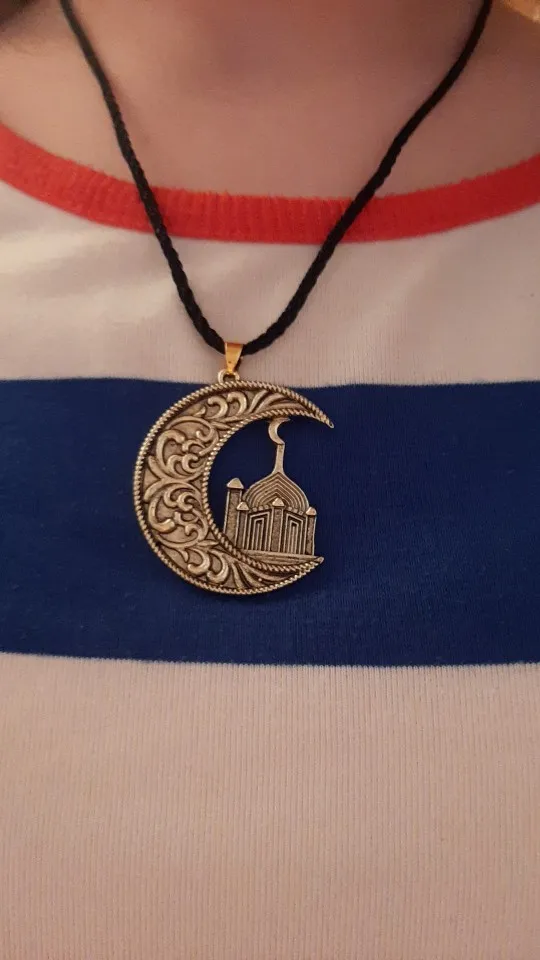 QIMING media luna Luna mezquita islámica Collar para las mujeres vikingo eslavo casa Vintage Retro colgante de joyería de collar para hombres,