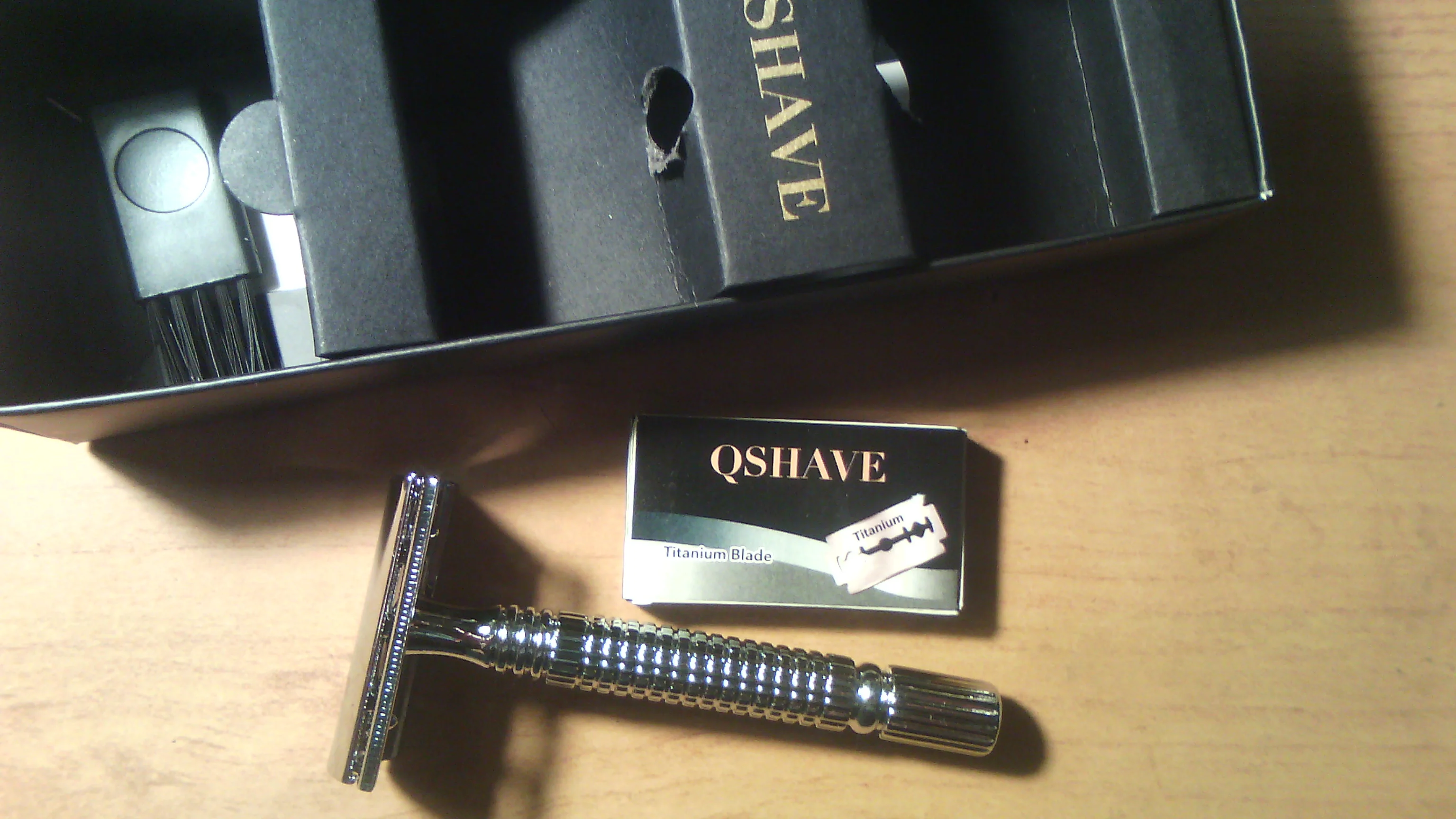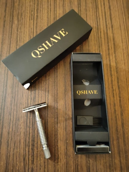 Qshave mango corto clásico de seguridad navaja de afeitar de doble filo para hombre Paquete de caja de regalo mango de Cura, 1 maquinilla de afeitar y 5 cuchillas