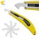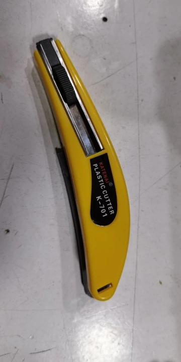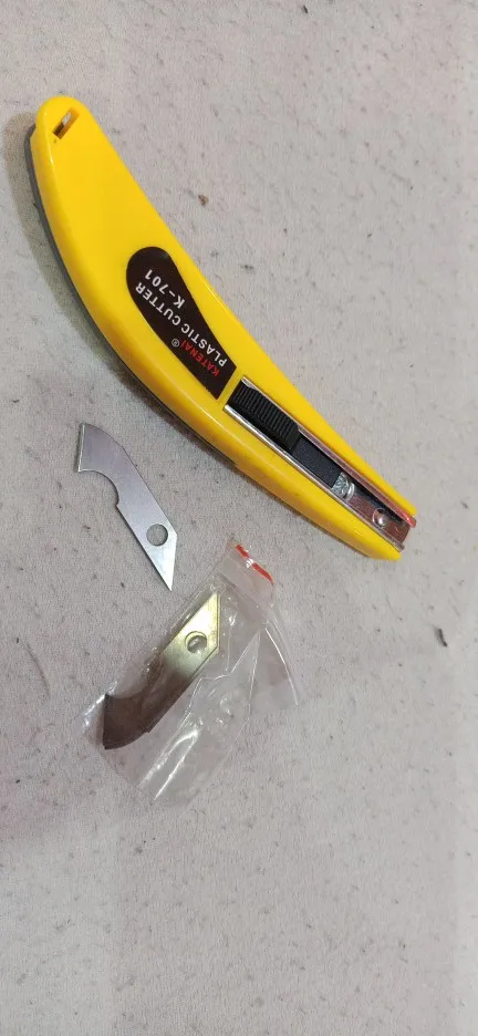 Cuchillo como indica el vendedor. Las cuchillas están dentro del mango que se abre tirando de la parte gris en el extremo posterior y lo indica con la palabra ¨PULL¨, en este detalle el modelo es diferente sujétalo con ambas manos al principio hasta que te hagas con el mecanismo de apertura.