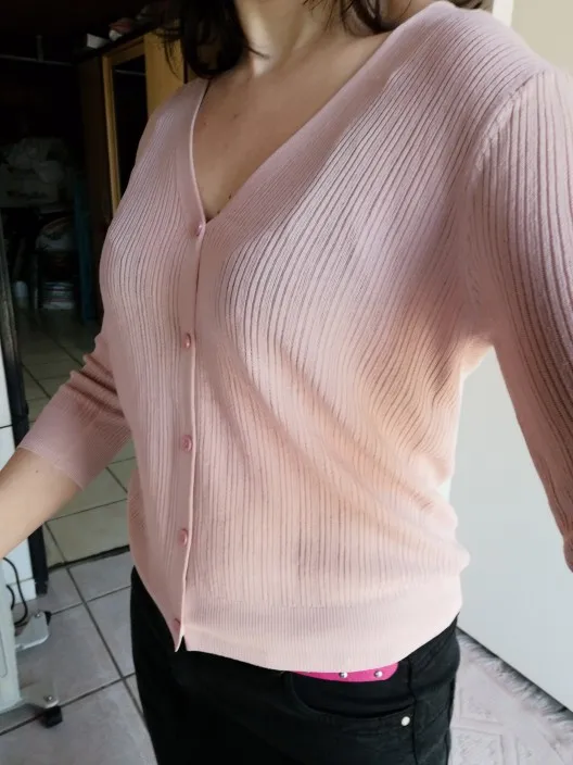 Queechalle-cárdigans tejidos para mujer, abrigo informal fino corto de media manga con cuello de pico, color gris, Blanco, Negro, Rosa y albaricoque, para verano