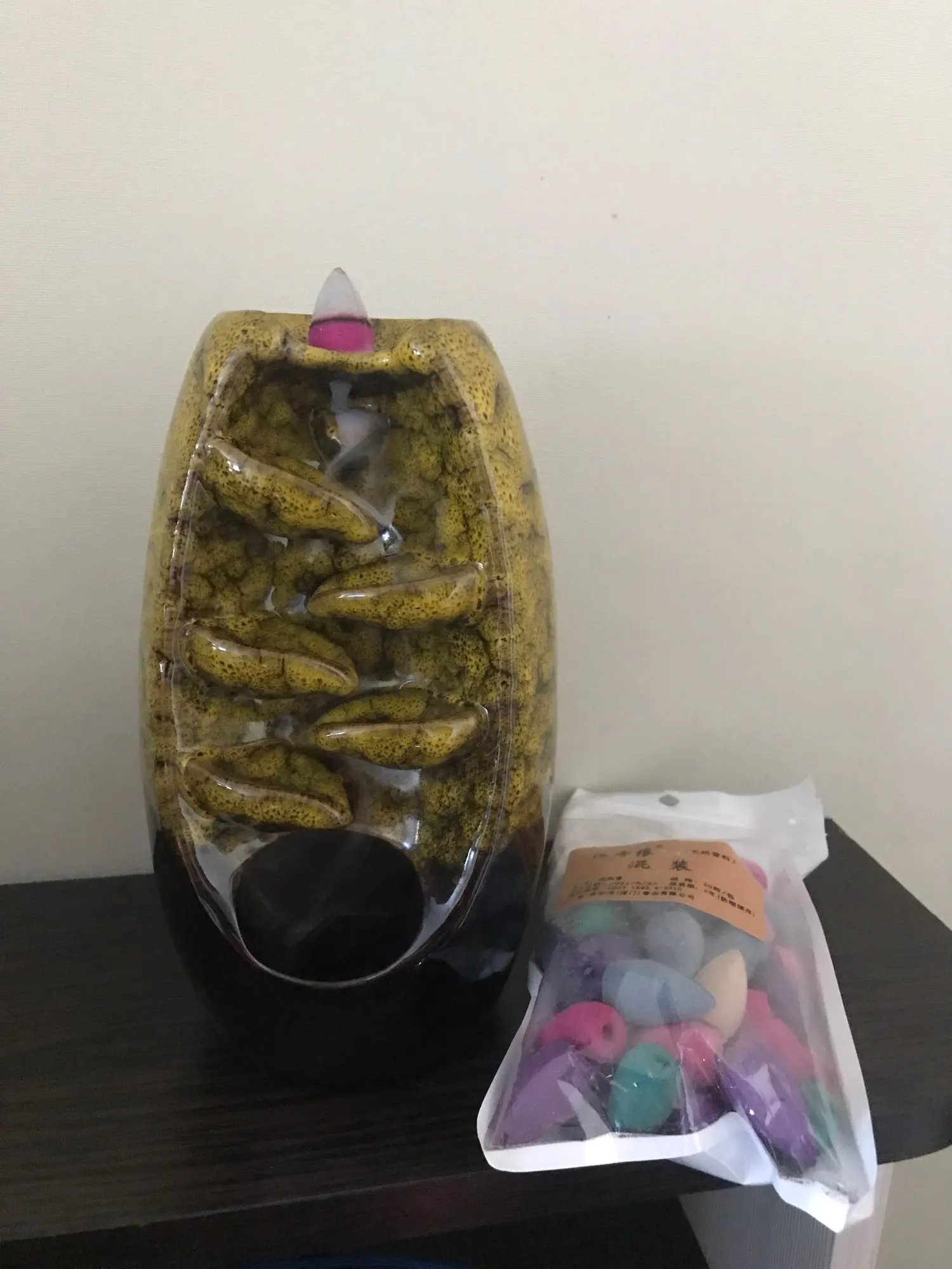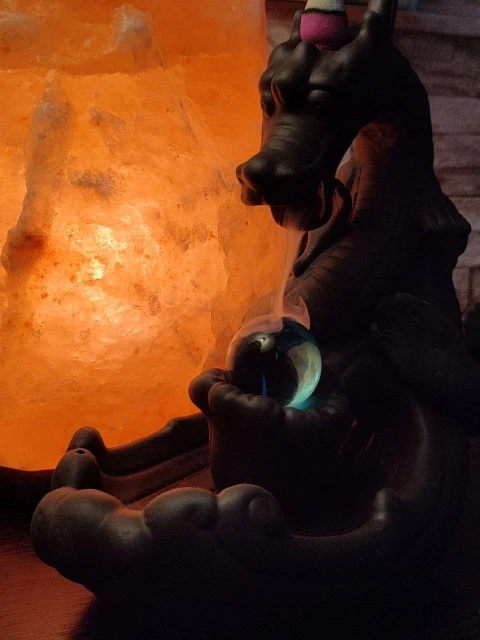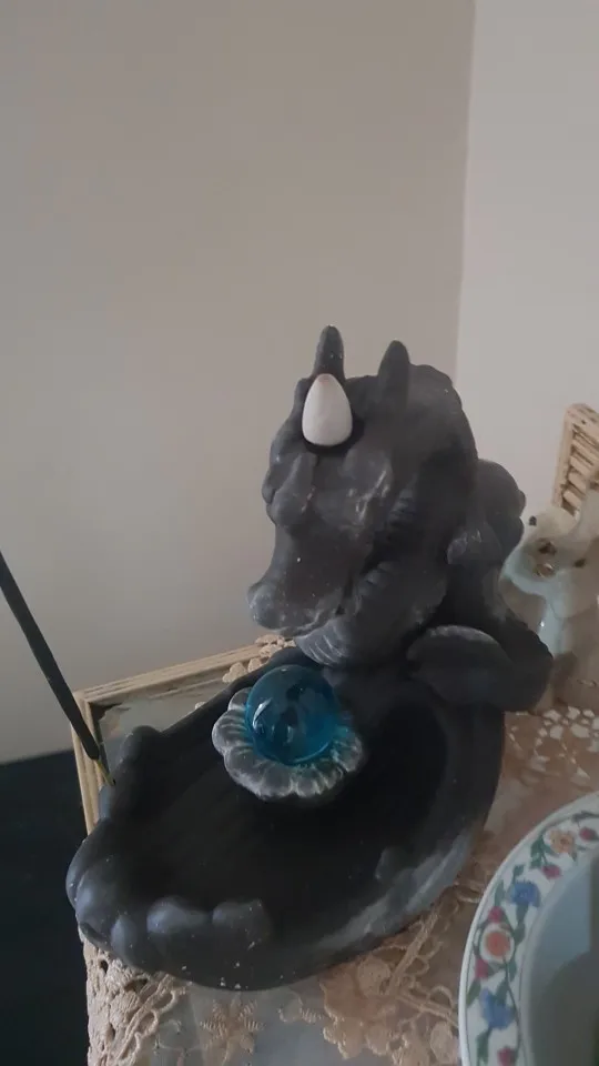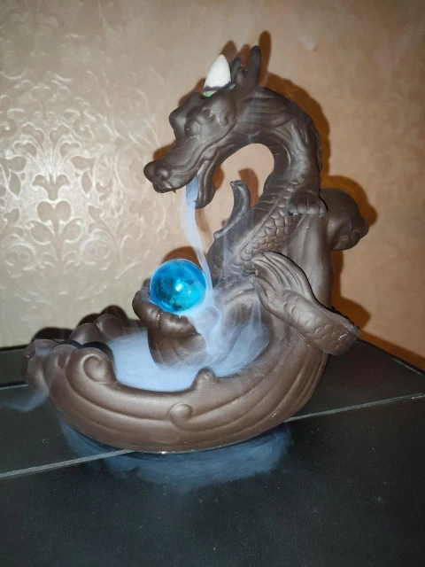 Quemador de incienso con flujo de retorno de cerámica, decoración creativa para el hogar, soporte de incienso de dragón con bola de cristal + conos de incienso de 20 piezas