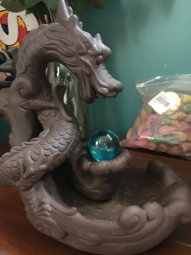 Quemador de incienso de reflujo, Dragon con bola de cristal + 20 piezas, soporte creativo de cerámica para incienso, conos de incienso