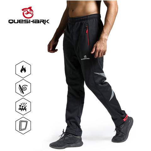 Queshark-Pantalones ciclistas a prueba de viento para hombre, prenda profesional de lana cálida, térmicos para deportes de equitación, pantalones para ciclismo de montaña