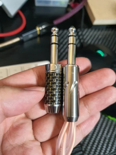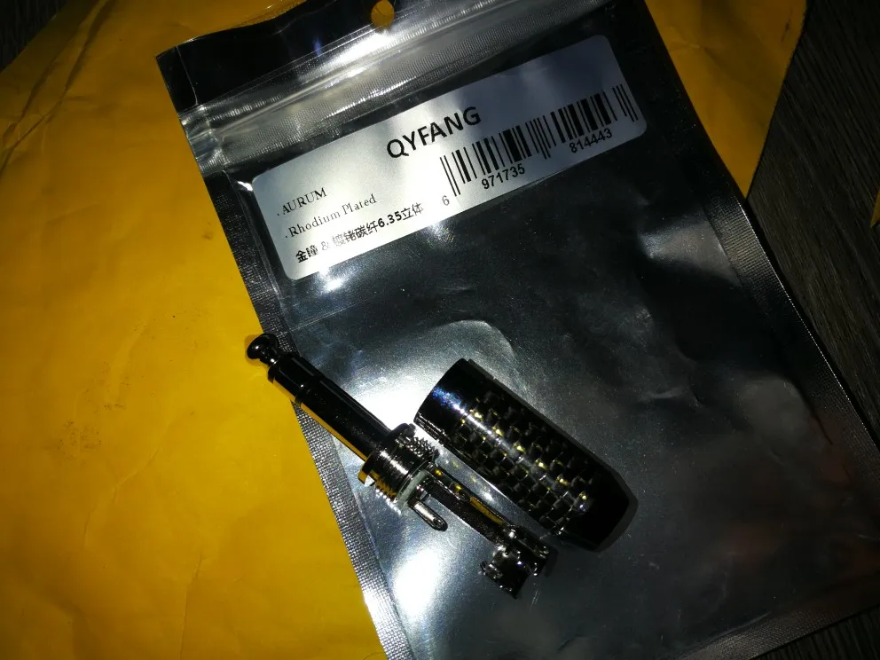QYFANG-conector de cable de fibra de carbono para auriculares, chapado en rodio conector de Audio de cobre, 3 Pole estéreo de 4 capas, adaptador de Metal, 6,35mm
