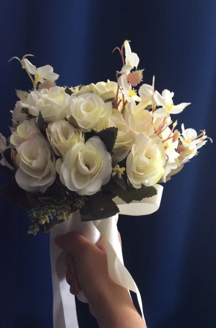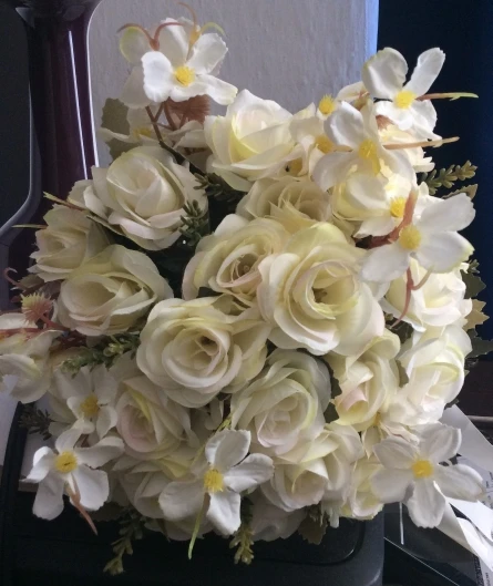 el ramo no es blanco, es amarillento....
