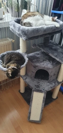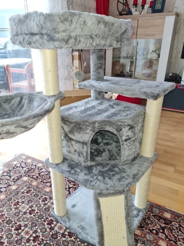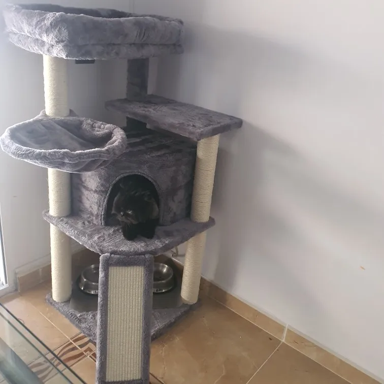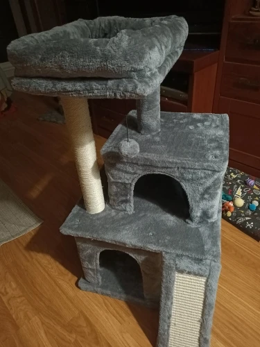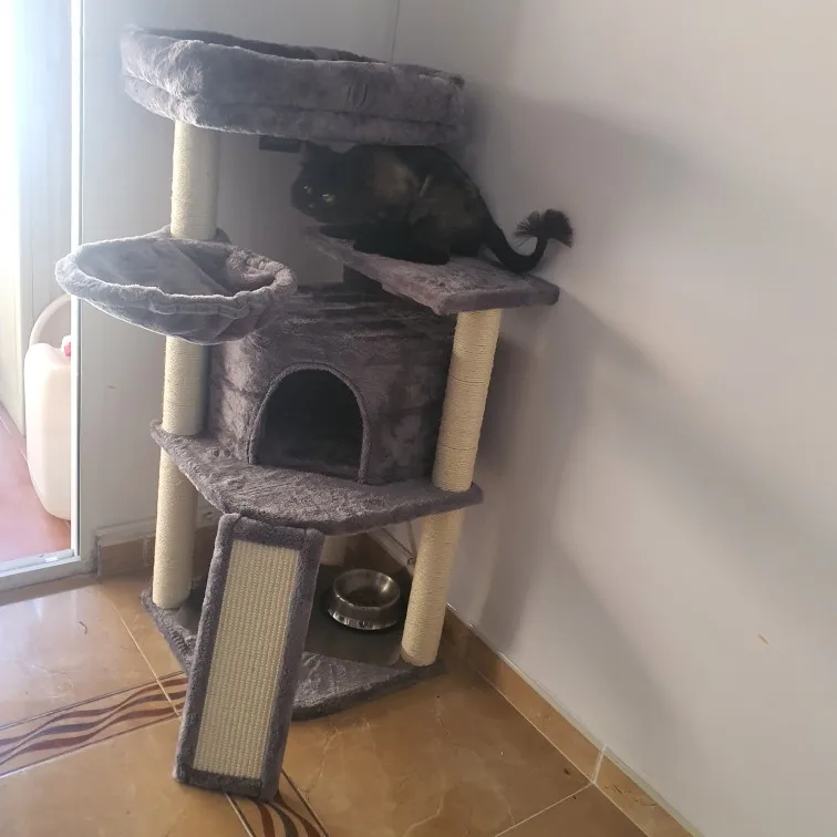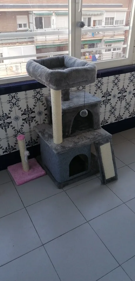 El rascador es precioso y muy sólido, a los gatos les encanta! Incluso viene con una puerta de repuesto y una pelota de más. Muy contenta con el producto, y mis gatos aún más.