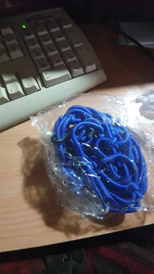una red, como en la foto. queda probarla en mi moto. lo único malo que la pedí en septiembre y me llegó en diciembre , hablando con el vendedor me extendió el plazo