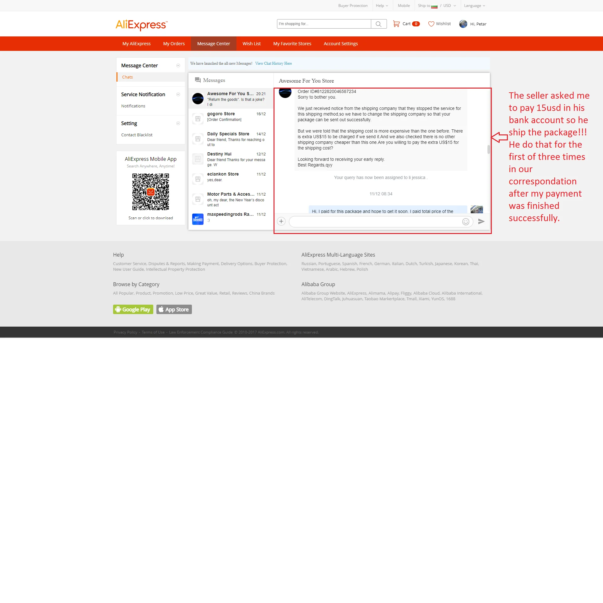 El vendedor ha estado operando en el sitio durante más de tres años.