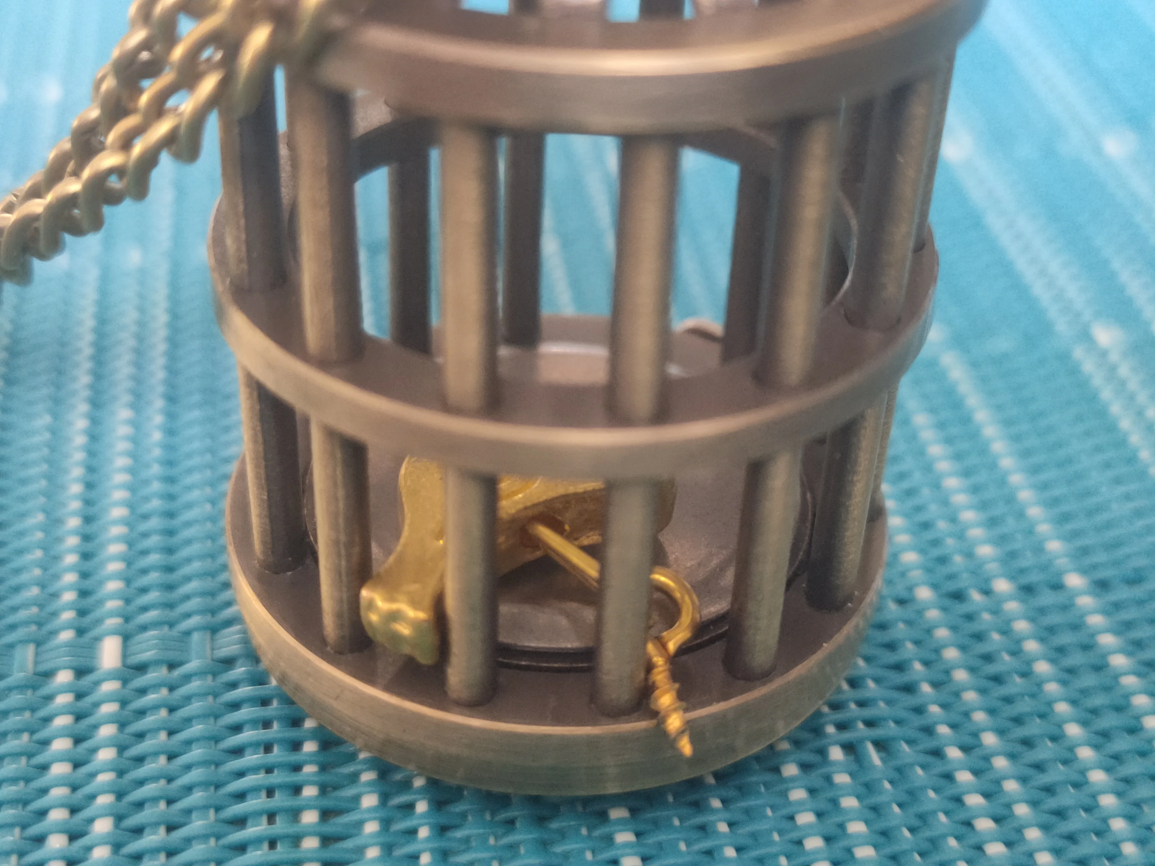 Reloj de bolsillo con jaula de pájaro de bronce para hombre, cadena con colgantes, diseño de moda, retro