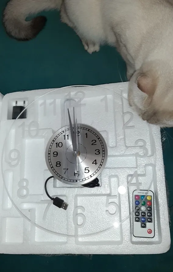El reloj es muy bonito, trae mando para cambiar colores y me ha gustado mucho. El único problema para mí es que quería conectar a la electricidad directamente (como una lámpara)y no puedo, porque la luz la lleva a través de USB+transformador a la corriente. Buen trato con el vendedor y acordamos solución.