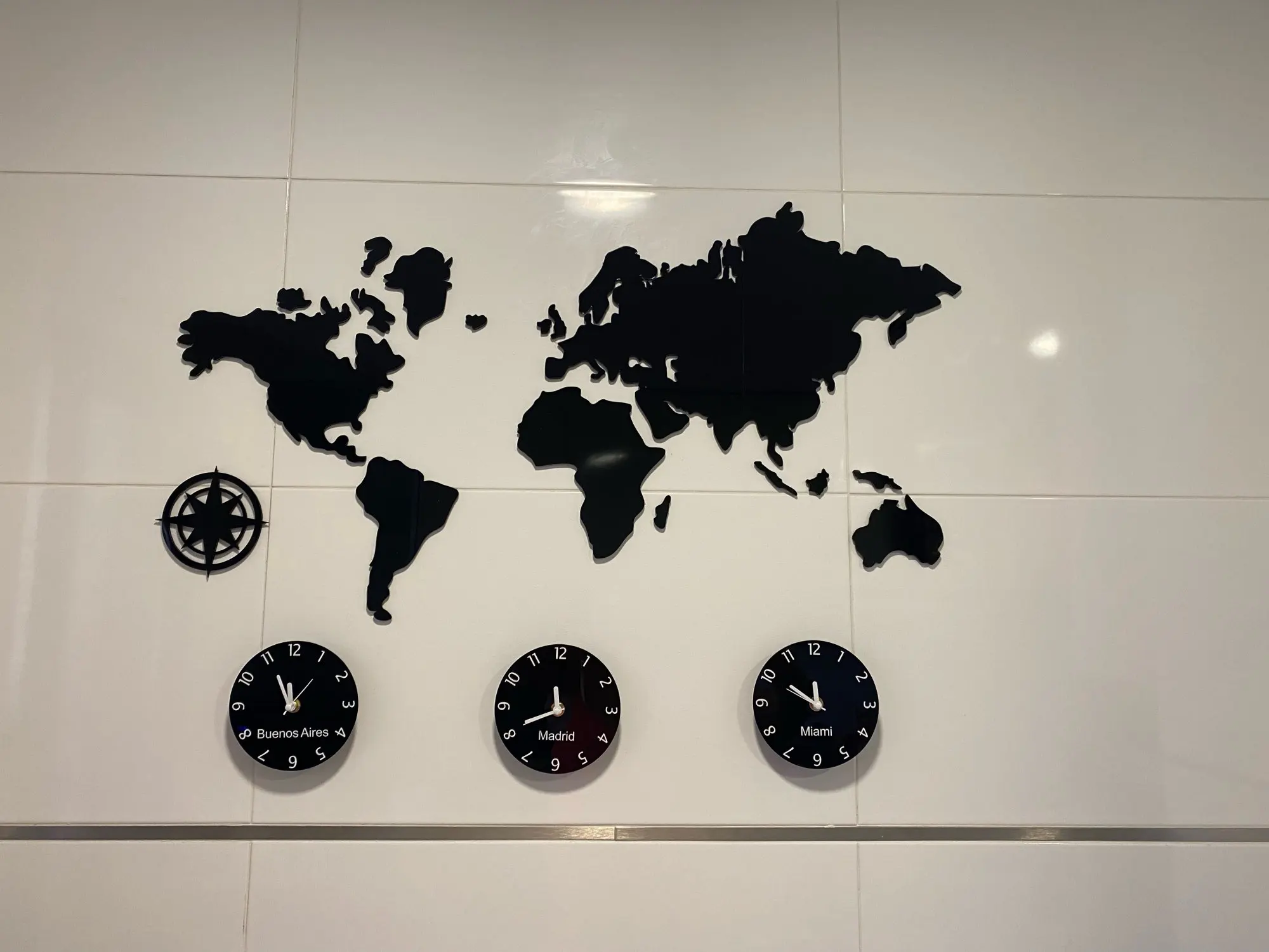 Reloj de pared grande con mapa del mundo, Nueva York, Londres, Tokio, zona horaria personalizada, silencioso, sin tic-tac, arte de pared de oficina