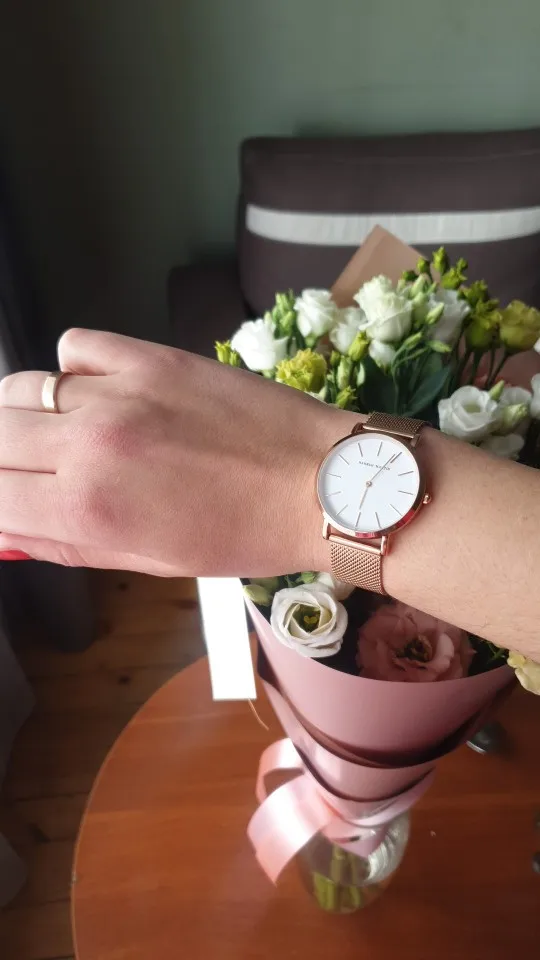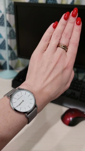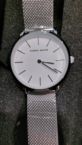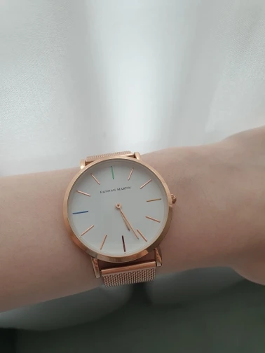 Muy muy buena calidad, lo he recibido hace días,lo puse en hora y va exacto. La calidad de los materiales es muy buena, yo diría incluso superior al precio que cuesta. La entrega muy rápida. Queda muy bien puesto en la muñeca. A mi mujer le encanta. Muchas gracias.